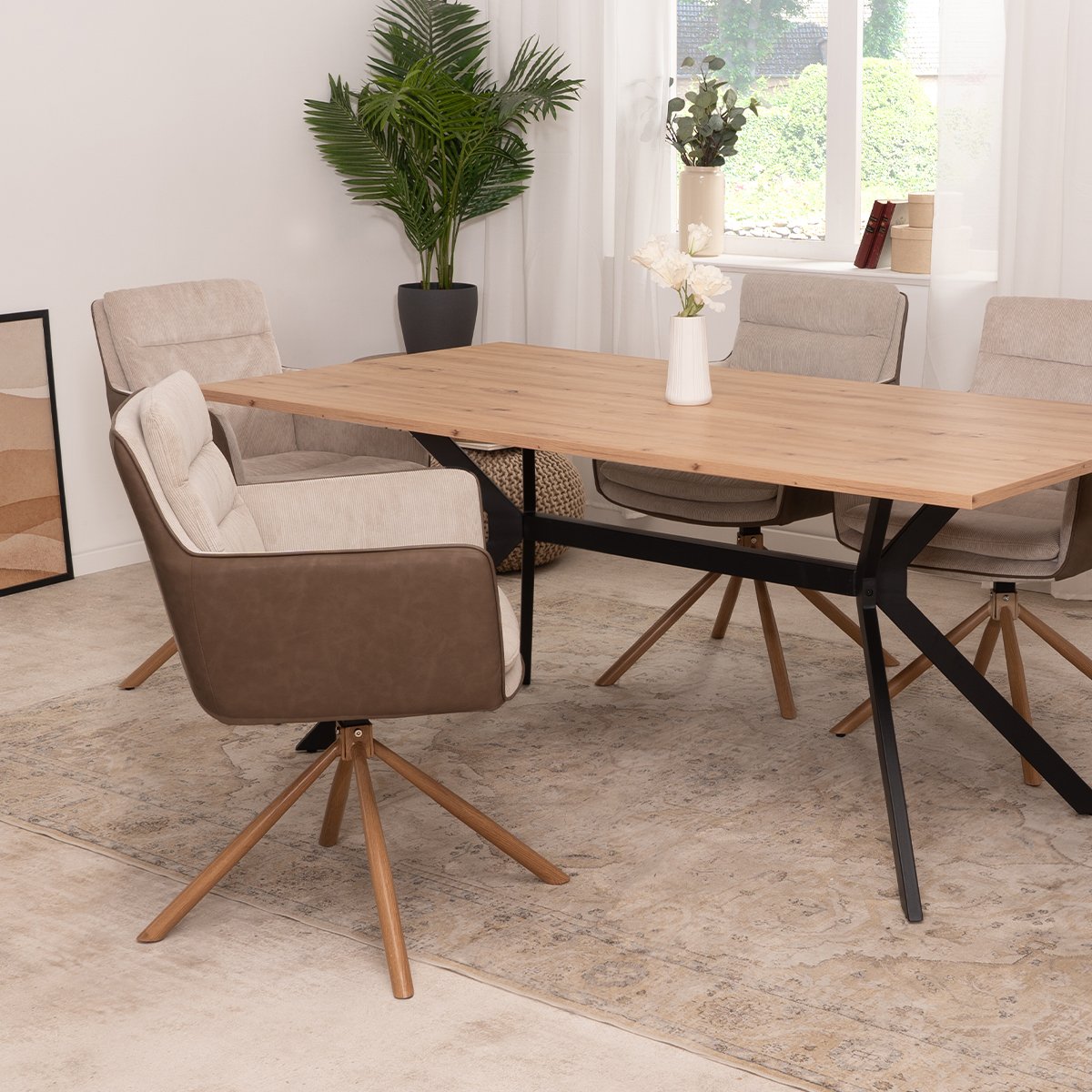 Productkenmerken: Draaistoelen - 360°. Metalen structuur, draagvermogen 120 kg, schuimdichtheid 200 g/m2. Binnenstof: microvezel 100% polyester. Achterstof: kunstleer 100% polyurethaan. Metalen poten. Productafmetingen: Lengte 63 cm x Hoogte 88 cm x Breedte 59 cm. Nettogewicht: 7,9 kg. Verpakkingsafmetingen: Pakket nr. 1: Lengte 66 cm x Hoogte 53,5 cm x Breedte 62,5 cm. Totaal bruto gewicht: 8,9 kg.