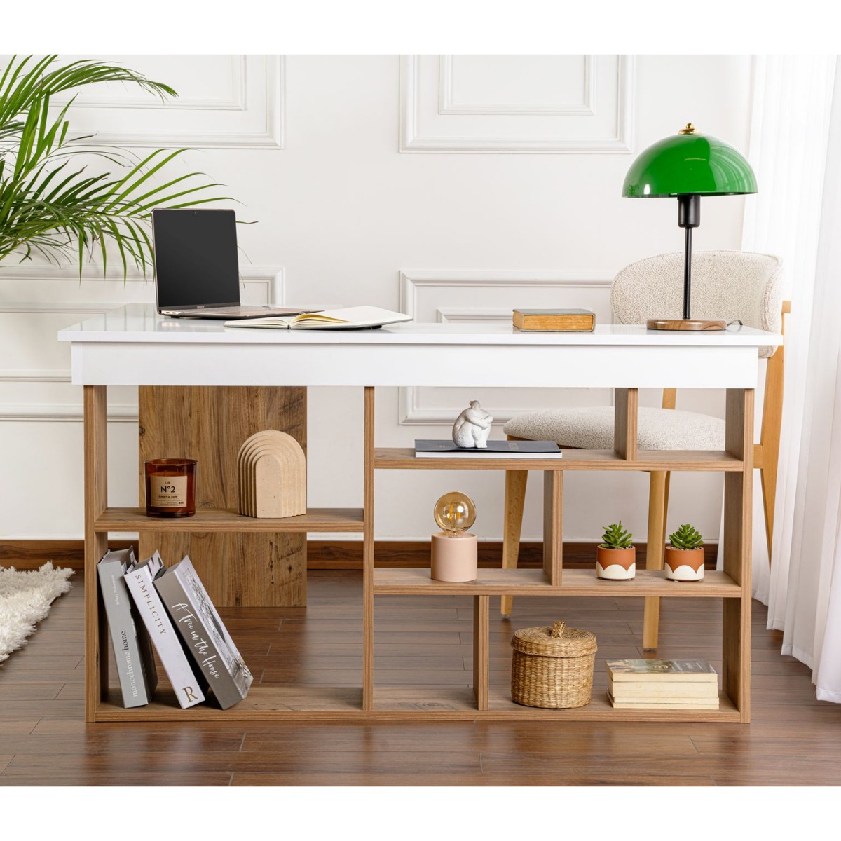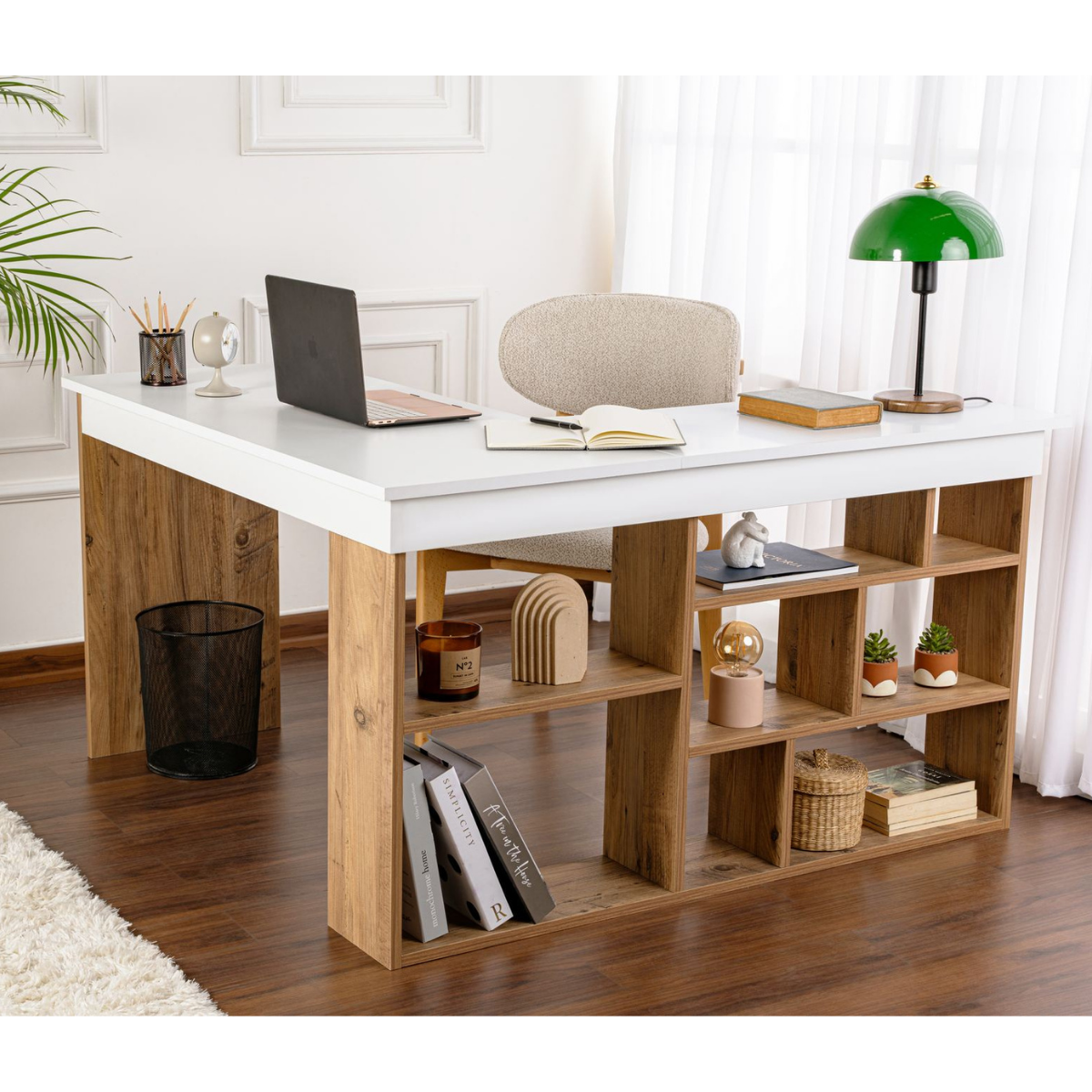 - Dit bureau biedt voldoende ruimte voor alle essentiële studiebenodigdheden, van boeken tot laptops.