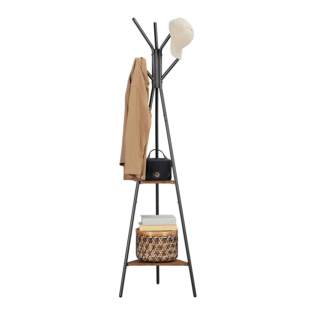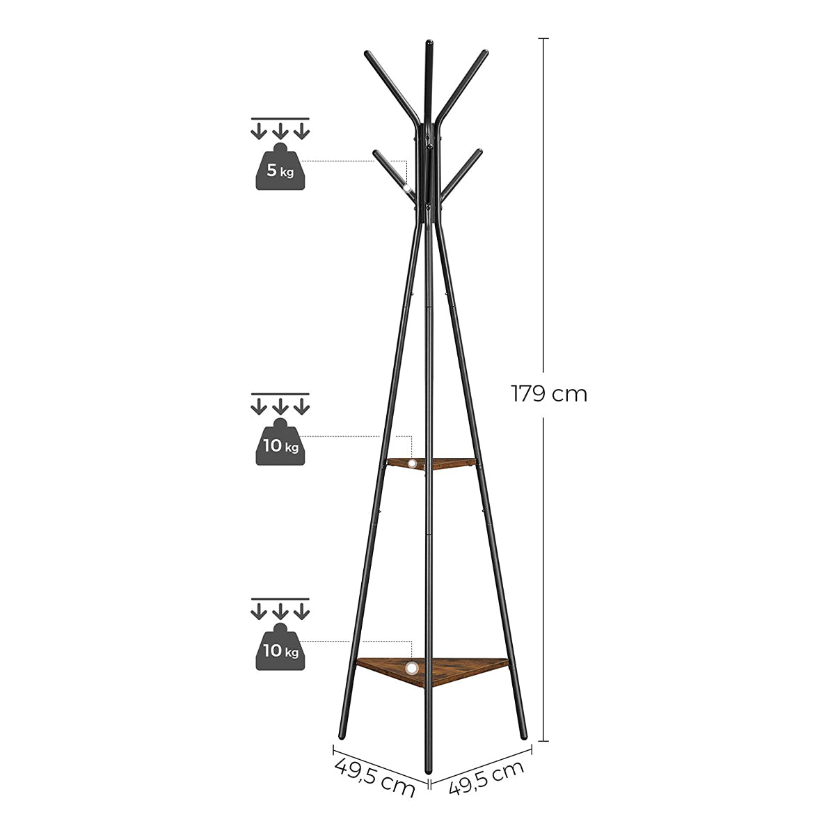 Ontdek onze staande kapstok met 2 planken - 179 cm hoogte, een praktische opbergoplossing voor je entree. De 2 planken bieden ruimte voor extra accessoires of decoratie. Het industriële ontwerp van de kapstok past bij alle interieurstijlen. De hoogte ervan maakt het mogelijk om lange jassen op te hangen. Productkenmerken: Belangrijkste materiaal: Spaanplaat, staal. 2 planken. 6 haken. Afmetingen van het product: Lengte 49,5 cm x Hoogte 179 cm x Diepte 49,5 cm - Nettogewicht: 3,4 kg. Afmetingen van de verpakking: Pakket n.º 1: Hoogte 70,8 cm x Breedte 42 cm x Diepte 7,3 cm - Bruto gewicht: 4,46 kg.