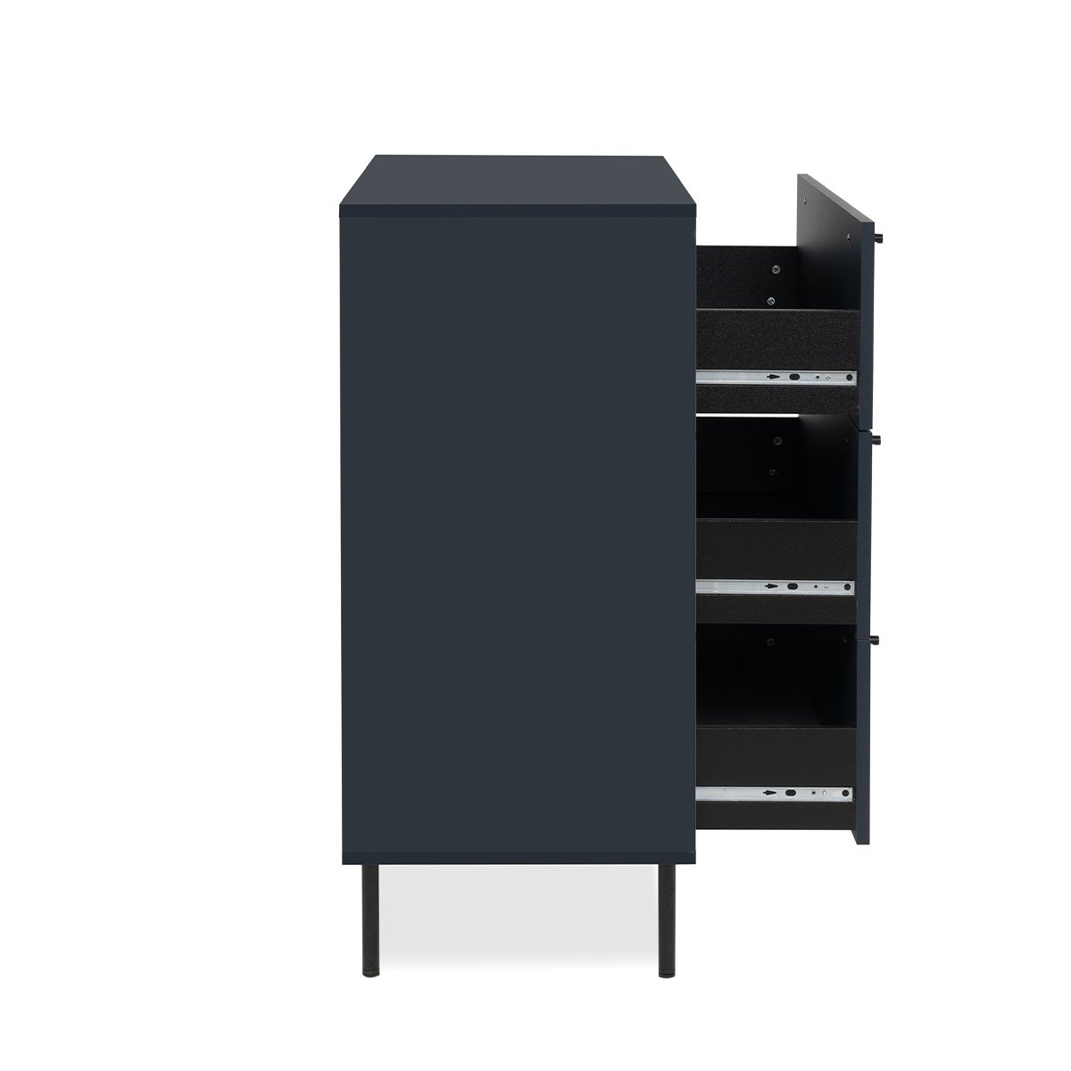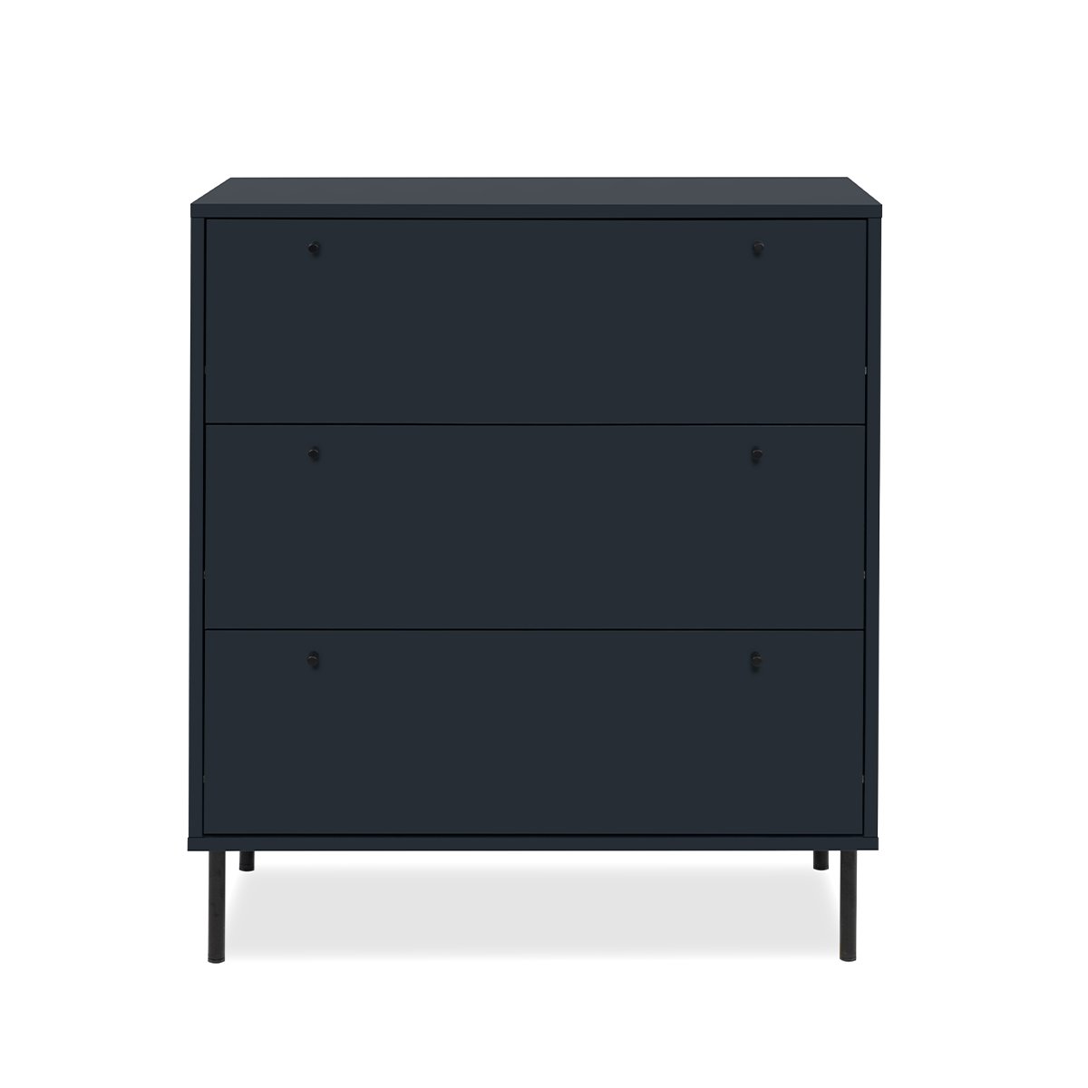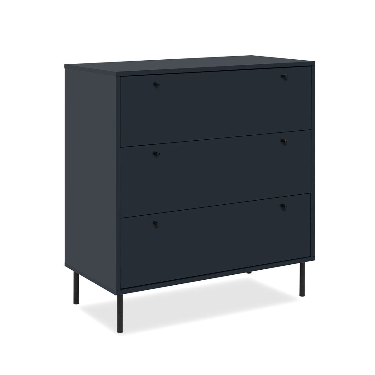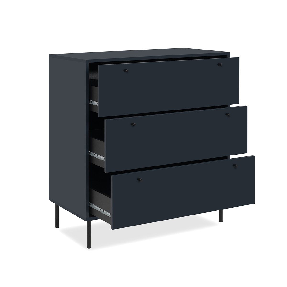 Productkenmerken: Zwarte metalen knoppen en 3 laden. Koningsblauwe kleur. Productafmetingen: Lengte 80 cm x breedte 40 cm x hoogte 90 cm - Nettogewicht 30 kg. Afmetingen pakket: Pakket nr. 1: Lengte 90 cm x Hoogte 16 cm x Diepte 49 cm - Bruto gewicht: 31 kg.