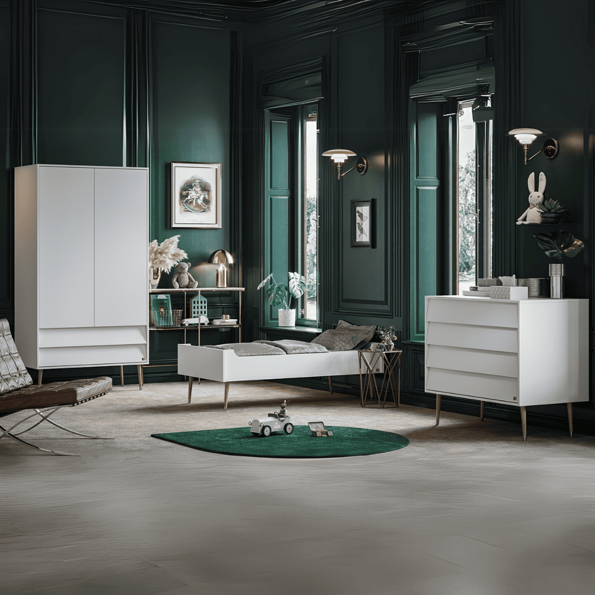 Om uw kleding in uw slaapkamer op te bergen, of het nu voor volwassenen of kinderen is, ontdek onze commode met 4 laden Bosque! Met zijn uitgesproken retro-look en zachte tinten past onze opbergcommode perfect in zowel moderne als vintage decoraties. De vier ruime laden stellen u in staat om uw truien, jeans en andere lingerie en beddengoed te organiseren. Productbeschrijving: Kleur: verkrijgbaar in wit of licht eiken De laden zijn uitgerust met het Push to Open-systeem. Dit mechanisme maakt het mogelijk de lade te openen door lichte druk uit te oefenen op de voorkant. Gemaakt van melamine spaanplaten. Massief eikenhouten poten en metaal. In deze BOSQUE-collectie vindt u twee mooie opbergmeubels: een commode en een kast. Ontworpen in Europa Productafmetingen: Diepte 55 cm x Breedte 100 cm x Hoogte 90 cm - Netto gewicht 47,9 kg Verpakkingsafmetingen: Pakket nr. 1: Breedte 134,5 cm x Diepte 62 cm x Hoogte 8 cm - Bruto gewicht: 29,4 kg Pakket nr. 2: Breedte 109,5 cm x Diepte 62 cm x Hoogte 7 cm - Bruto gewicht: 22,4 kg