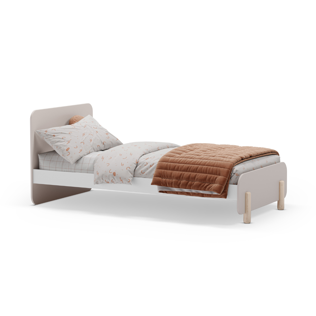 - Bed met slaapoppervlak van 90x190 cm, crème gelakt met licht houtdecor.
