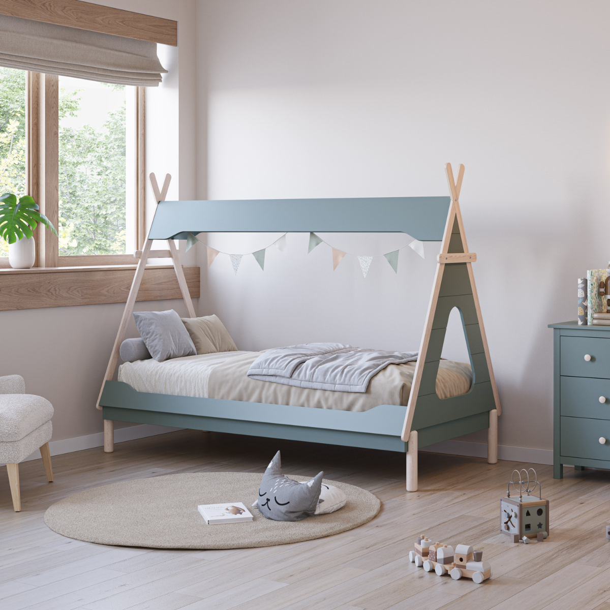 - Tipi-huisbed met slaapoppervlak van 90x190 cm, modulair.
