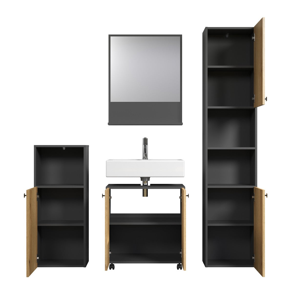 - Hergestellt aus melaminbeschichteten Spanplatten und MDF.