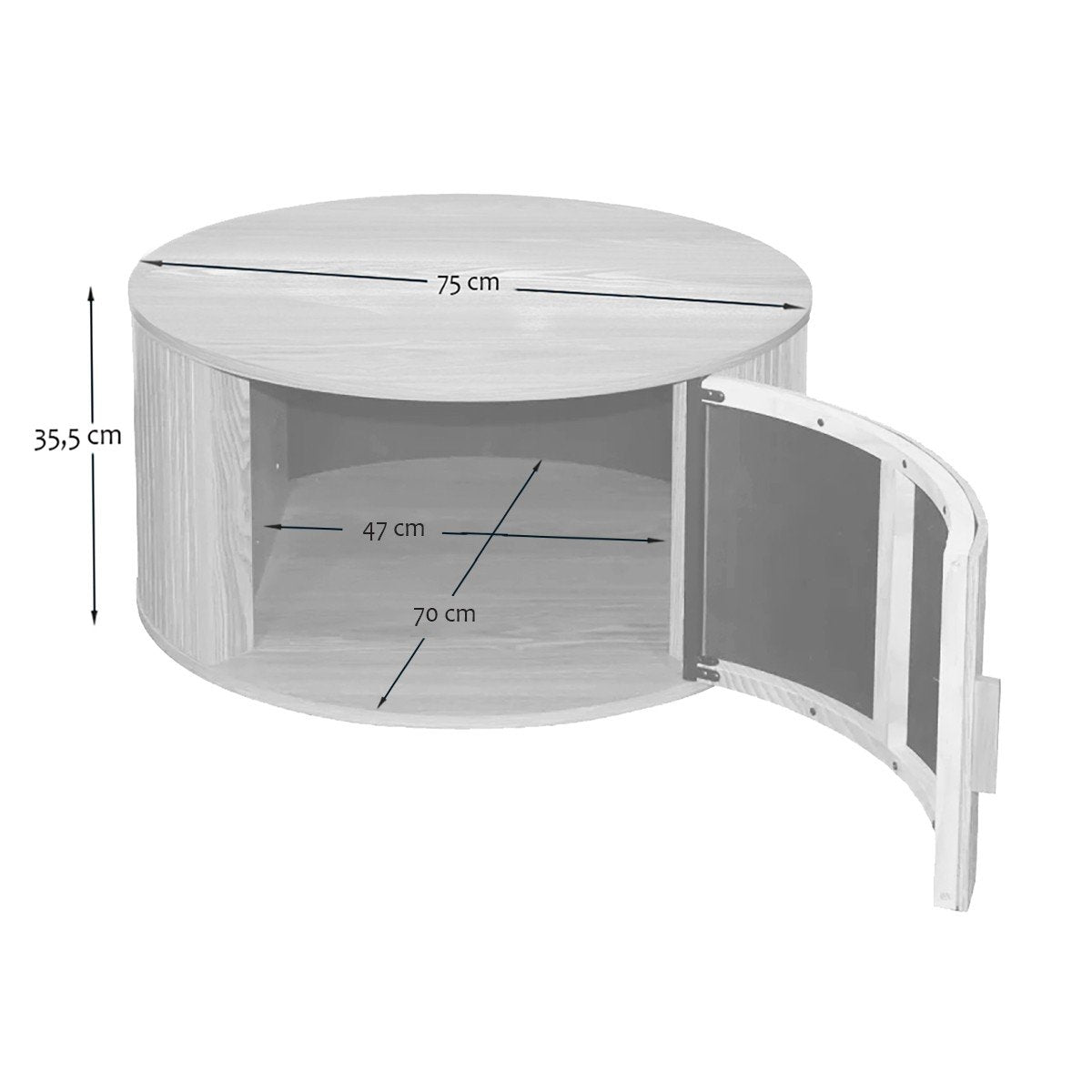 - Breng stijl en functionaliteit in uw interieur met deze ronde salontafel met een warm en functioneel ontwerp.