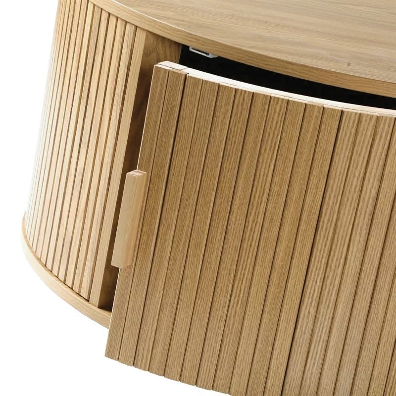 - De discrete opbergruimte, toegankelijk via een deur voorzien van een handgreep van hout, zorgt ervoor dat uw woonkamer georganiseerd en elegant blijft.