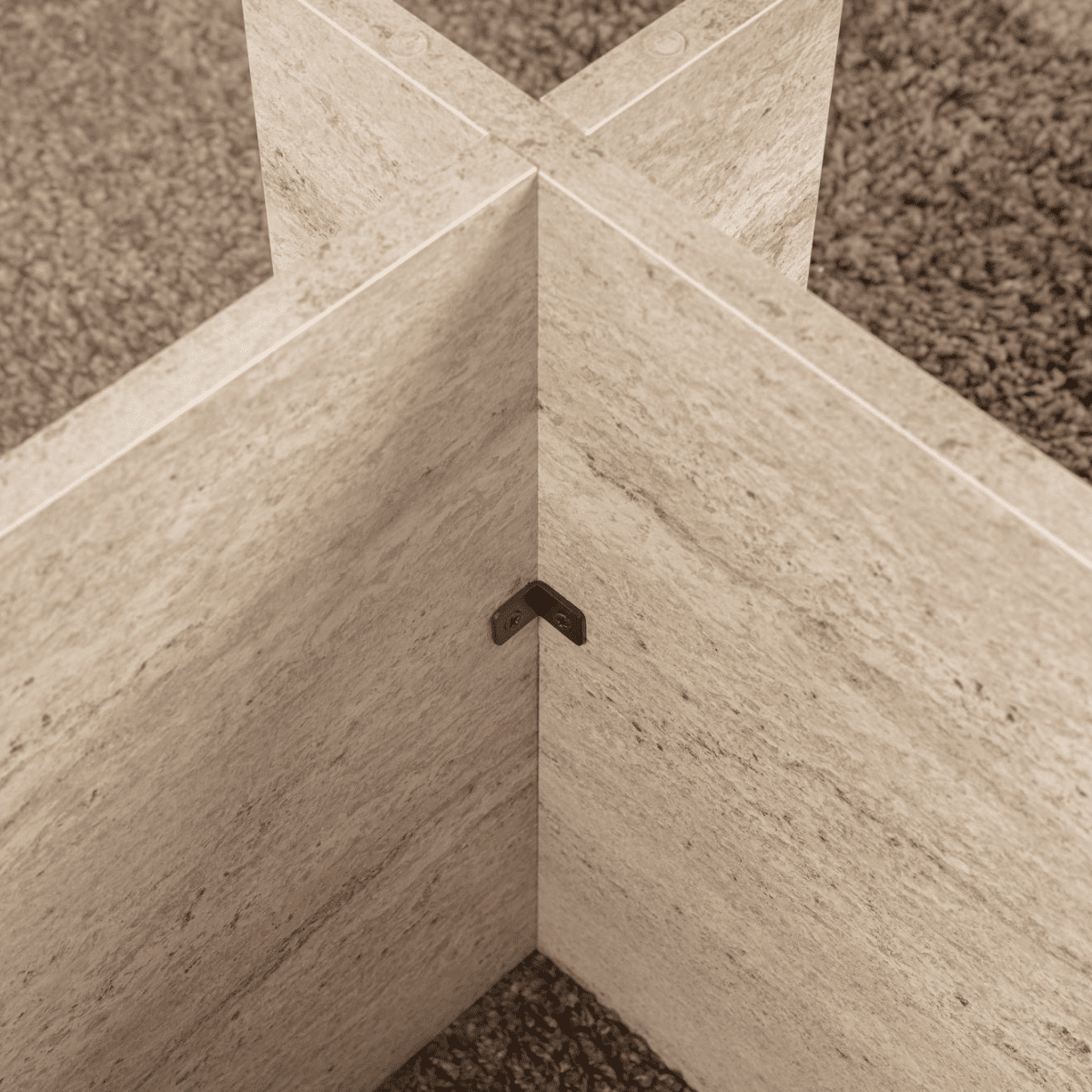 - Structuur gemaakt van gemelamineerde spaanplaten.