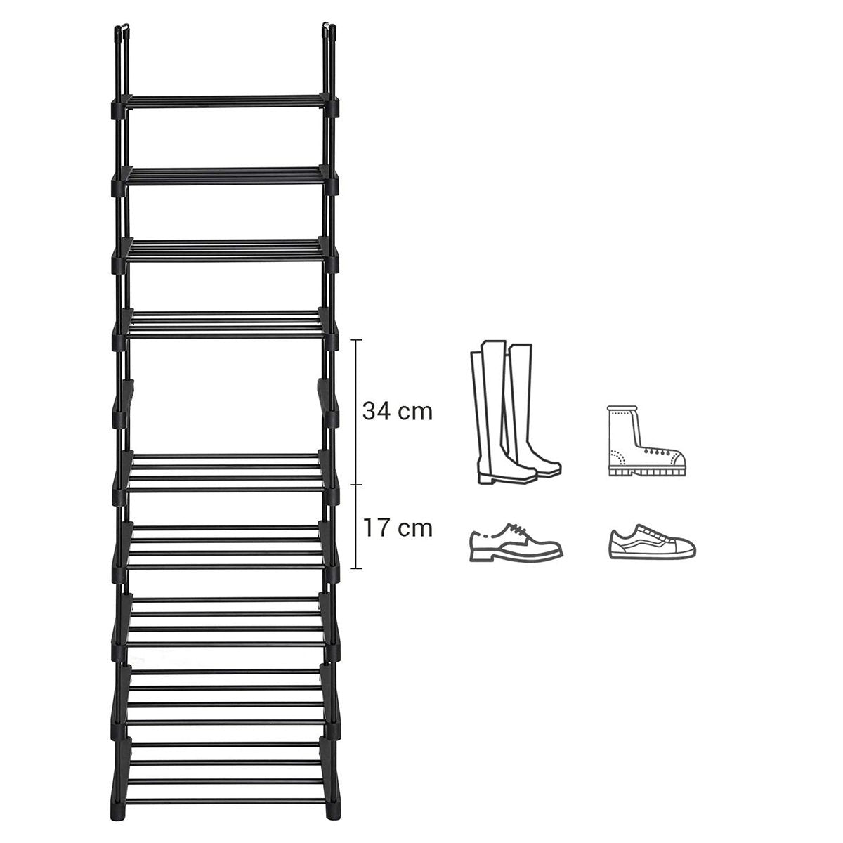 Ontdek onze Schoenenrek van Zwart IJzer met 10 moduleerbare niveaus om je hal te organiseren. Het rek heeft 10 niveaus die aanpasbaar zijn, zodat je het kunt personaliseren. Gemaakt van staal, het geeft een moderne uitstraling aan je kamer. Productkenmerken: Belangrijkste materiaal: IJzer. Wordt als bouwpakket geleverd. Montage door de klant. Handleiding inbegrepen. 10 moduleerbare niveaus. Afmetingen van het product: Breedte 45 cm x Hoogte 174 cm x Diepte 30 cm - Nettogewicht: 3 kg. Afmetingen van het pakket: Pakket n.º 1: Hoogte 22,5 cm x Breedte 44 cm x Diepte 13 cm - Bruto gewicht: 3,2 kg.