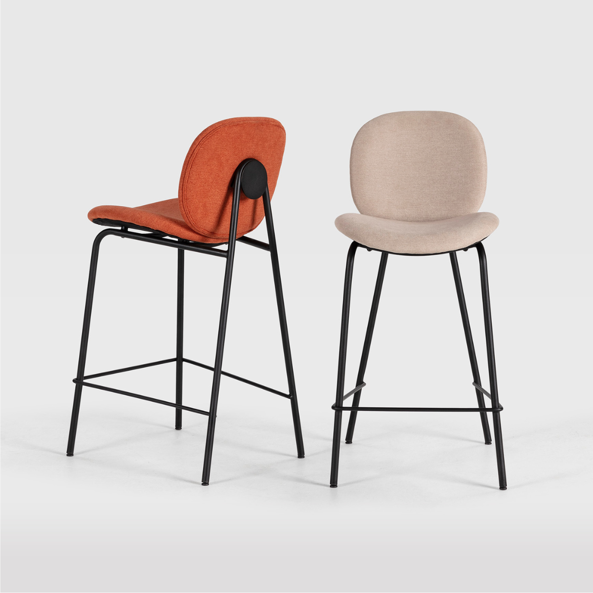 - Zit- en rugleuning: Stof, poten van zwart gelakt metaal.