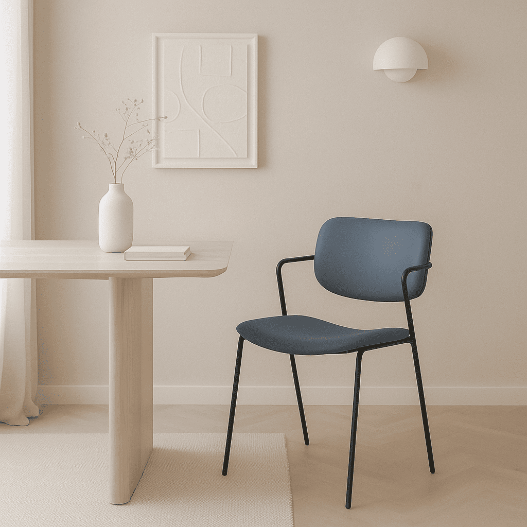 - Zit- en rugleuning: PU-leer, poten van zwart gelakt metaal.