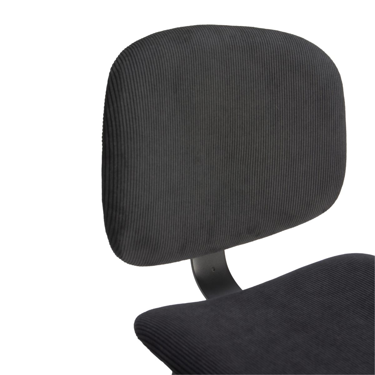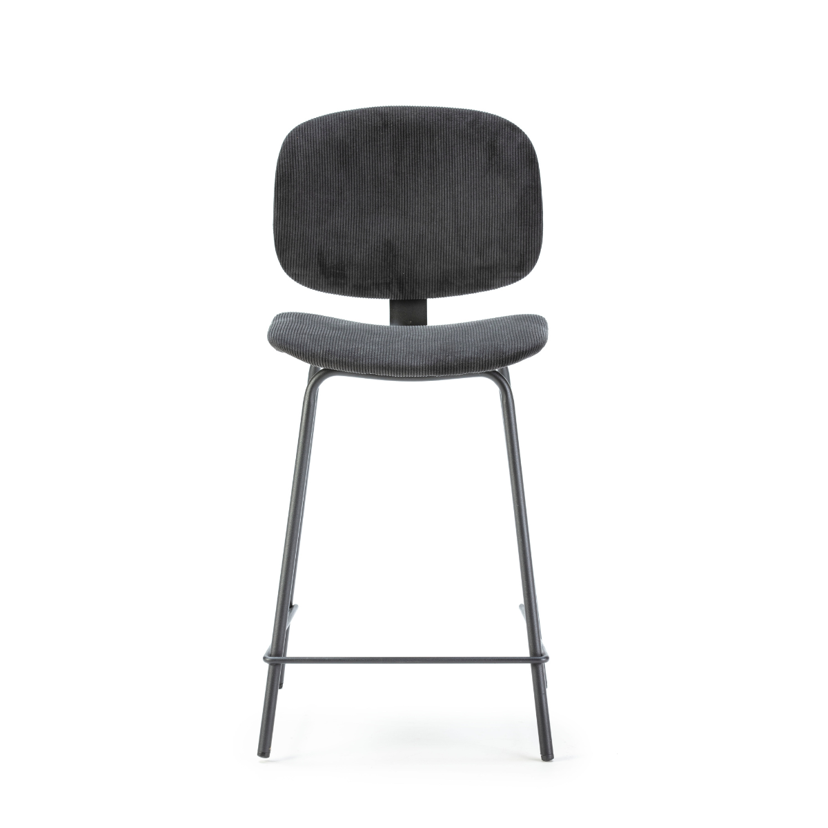 - Zit- en rugleuning: Stof, poten van zwart gelakt metaal.