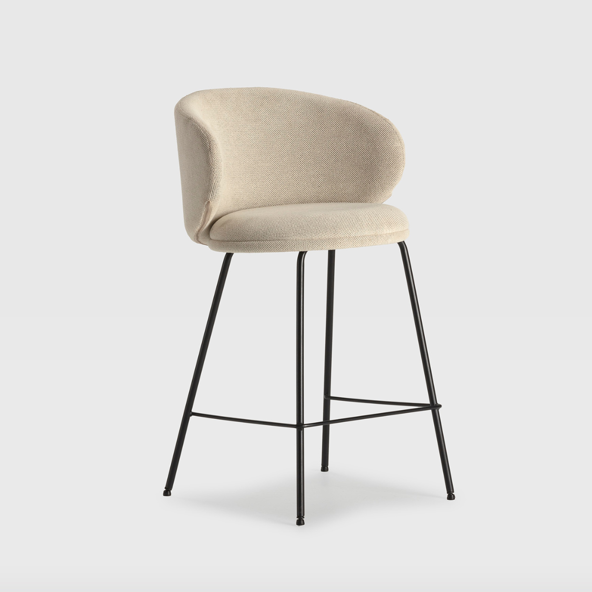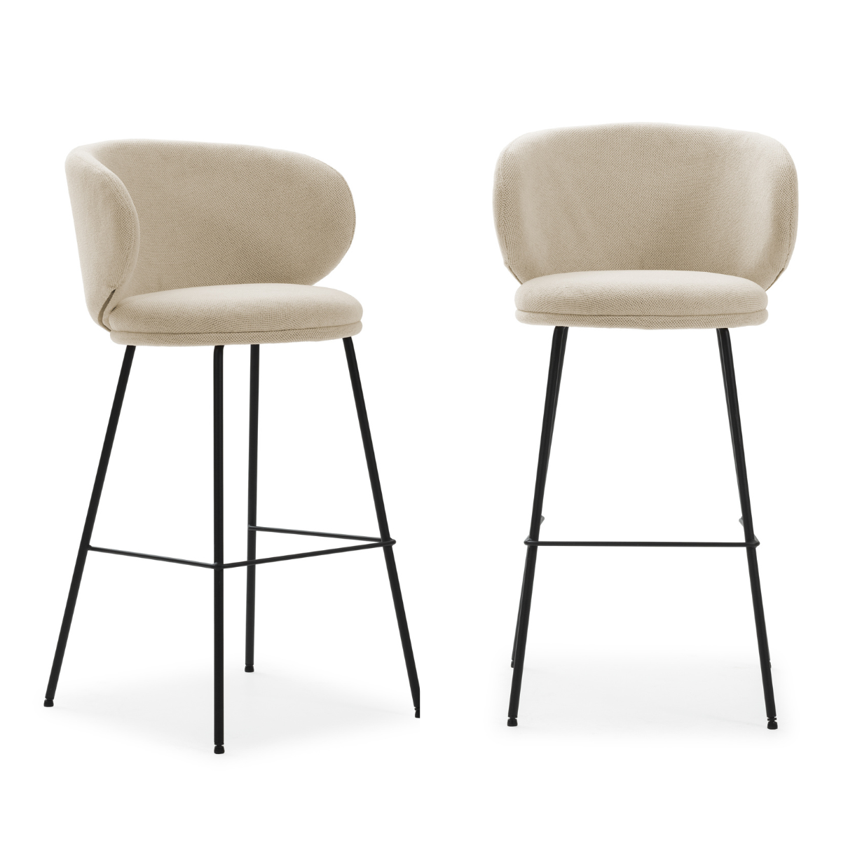 - Zit- en rugleuning: Stof, poten van zwart gelakt metaal.