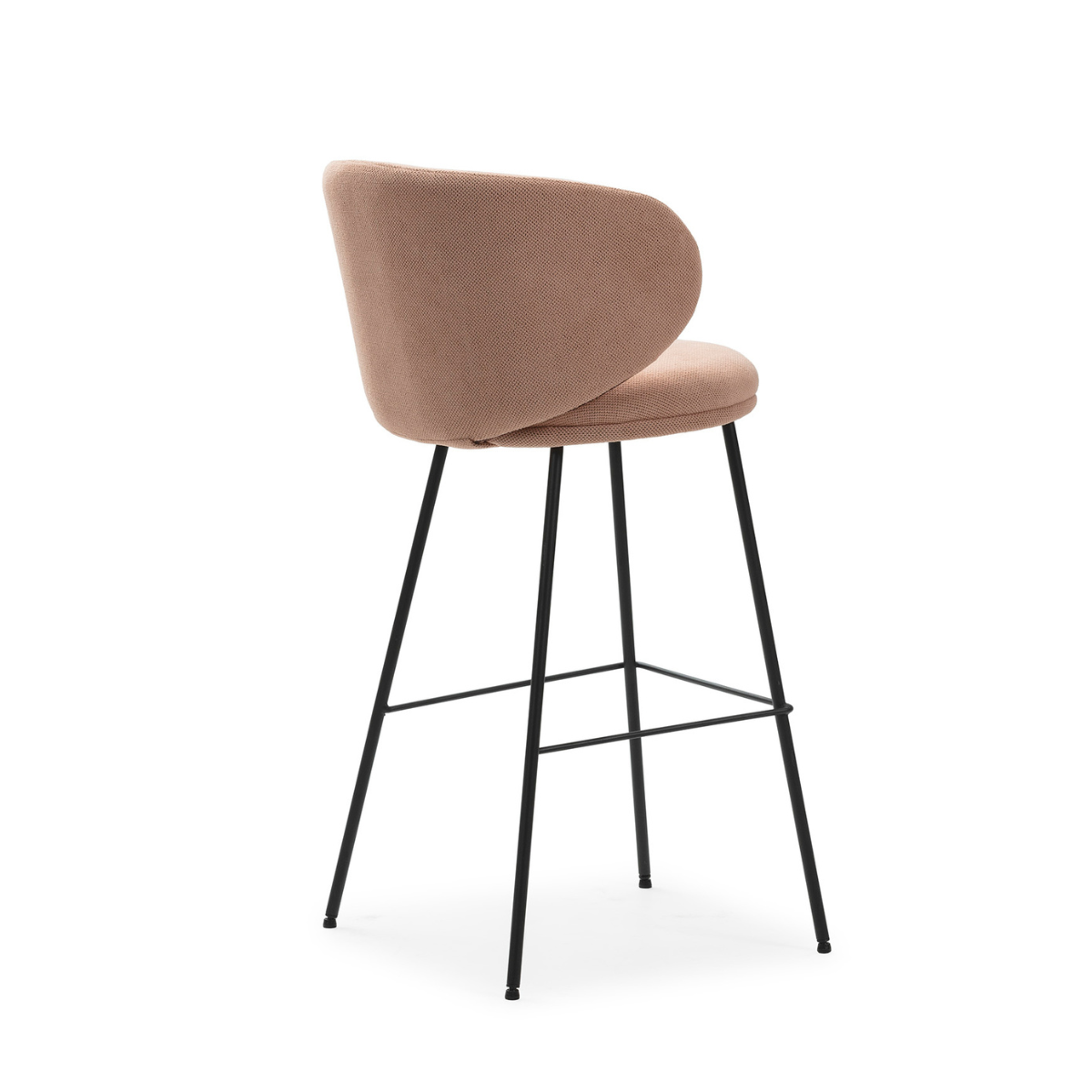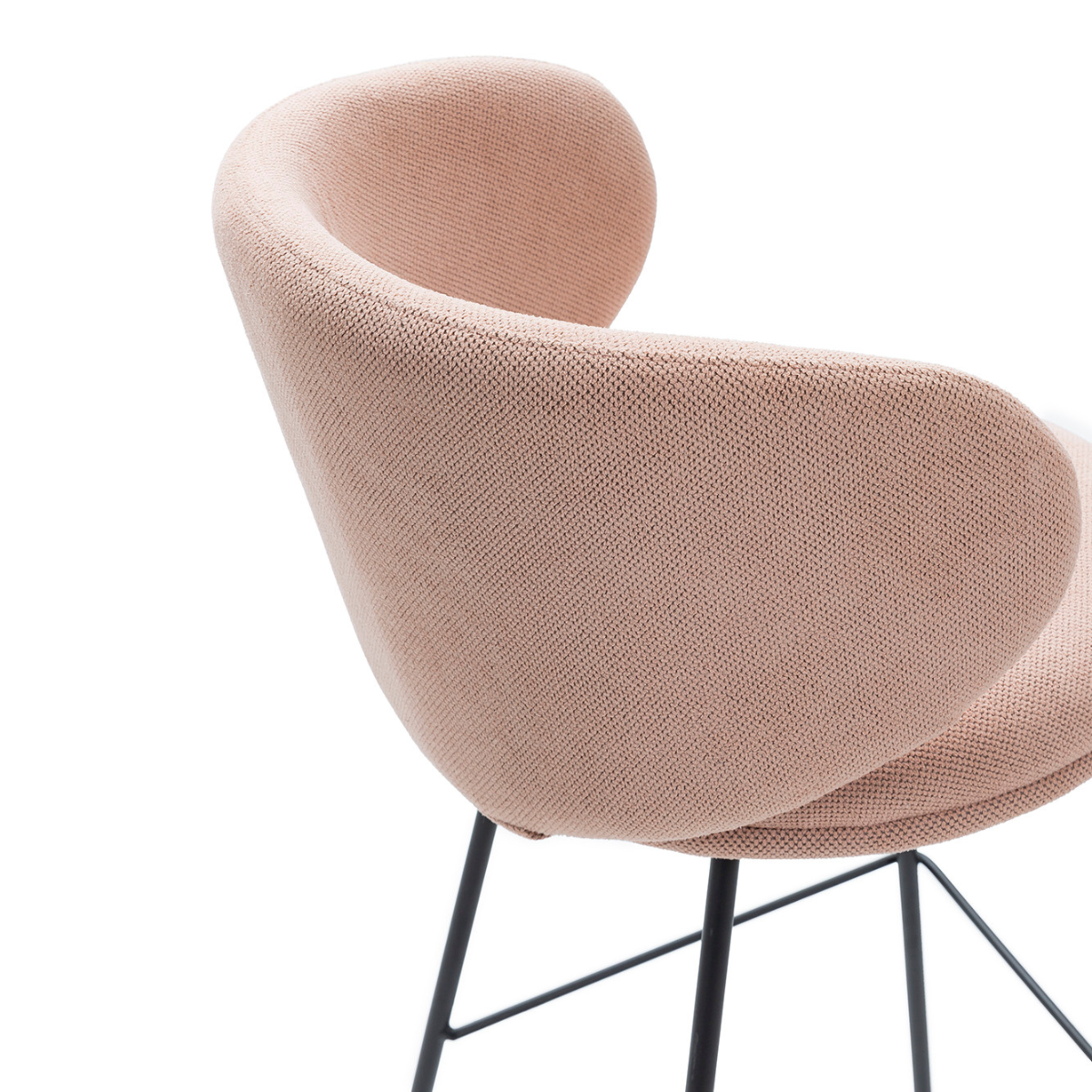 - Zit- en rugleuning: Stof, poten van zwart gelakt metaal.