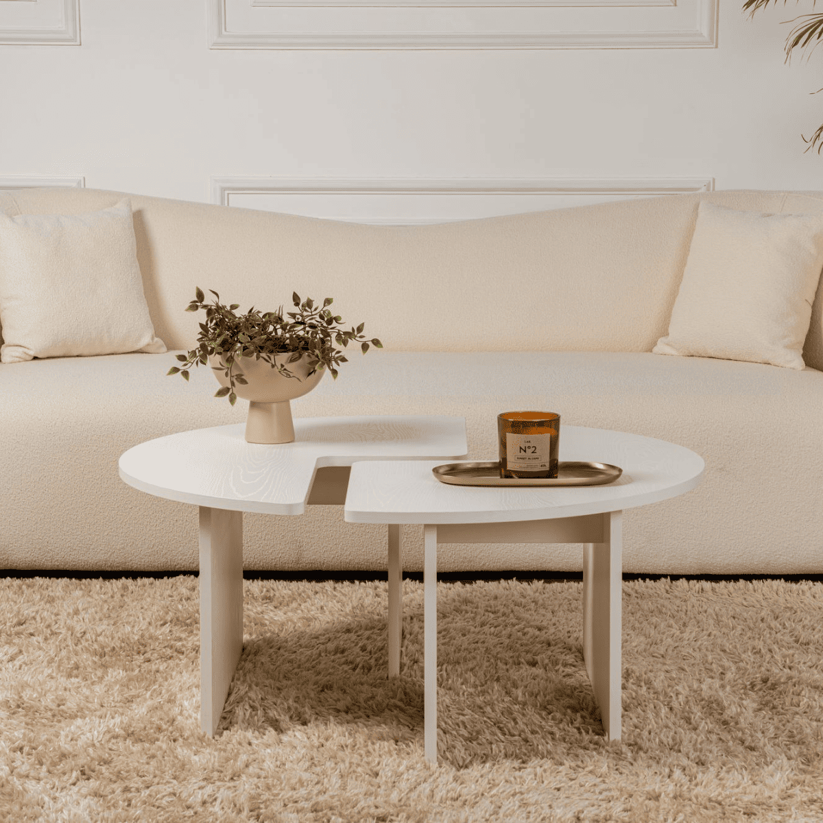 - Set van 2 salontafels. Gemaakt van 100% melamine gecoate spaanplaat, ontworpen voor duurzaamheid.