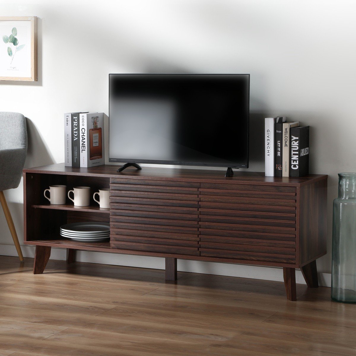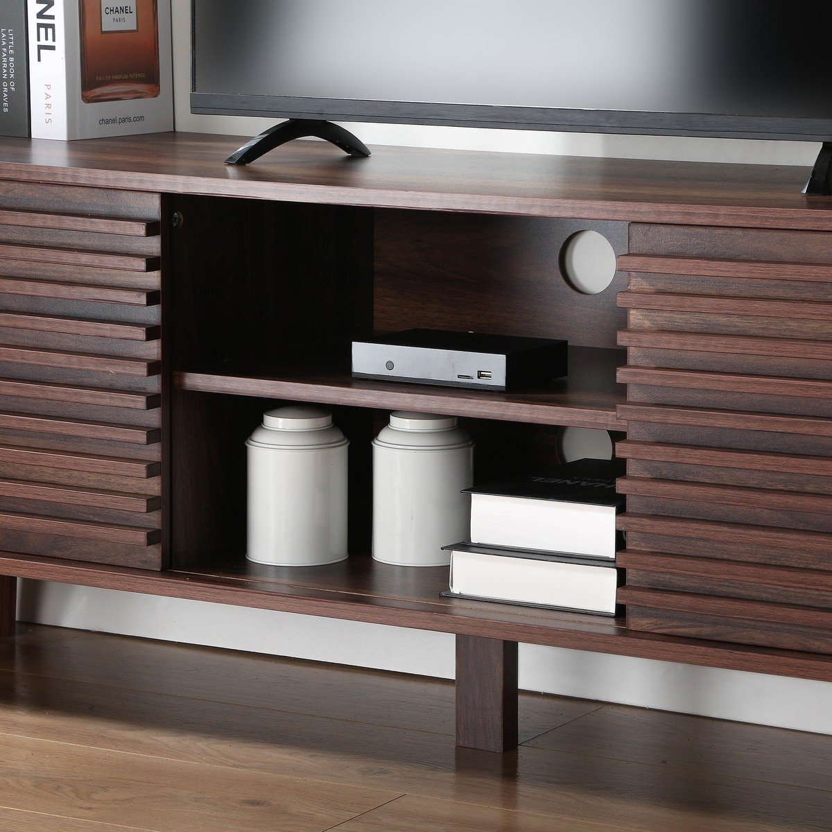 - Afwerking in donker walnoothout.