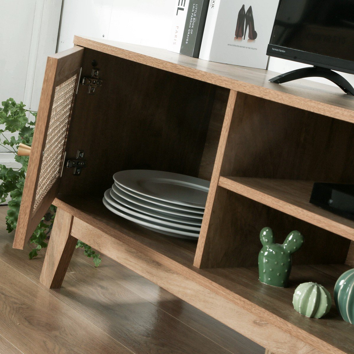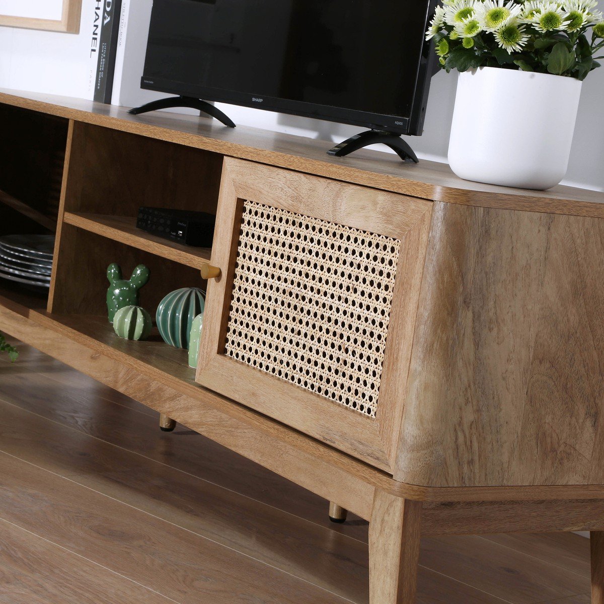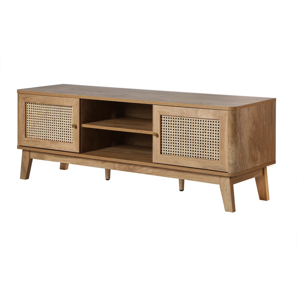 TV-meubel met 2 deuren en rotanvlechtwerk, dat een natuurlijke en elegante touch aan uw entertainmentruimte toevoegt.