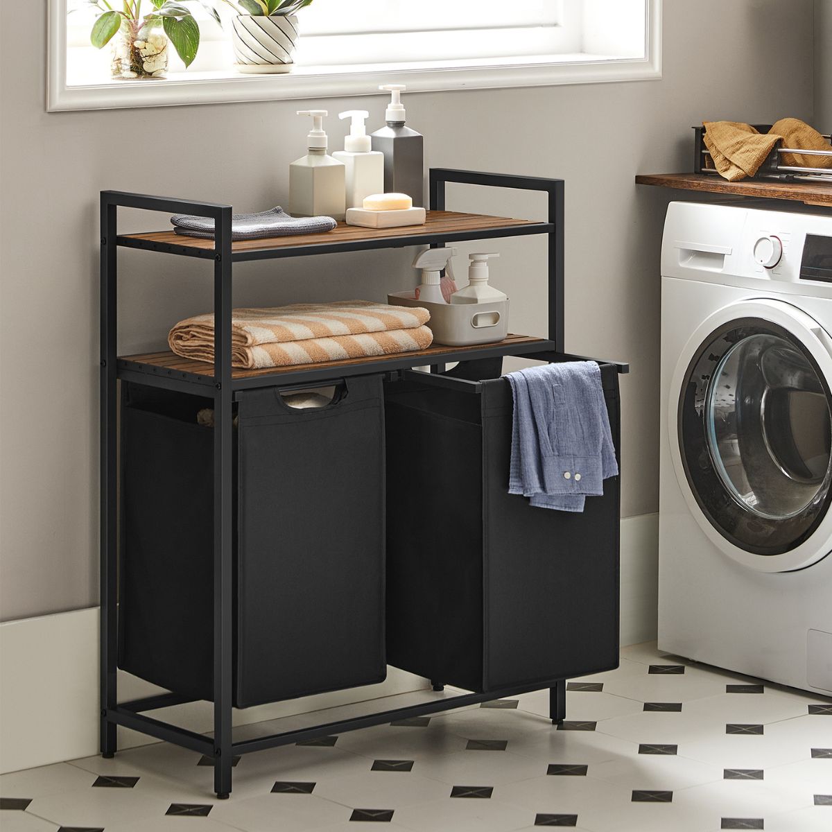 Kenmerken van het product: Wasmand met 2 verwijderbare zakken. 2 opbergplanken. 45L capaciteit per zak. Ideaal voor badkamer of wasruimte. Sorteer uw wasgoed op kleur met de twee stoffen zakken en berg al uw wasmiddel, wasverzachter en andere rei…