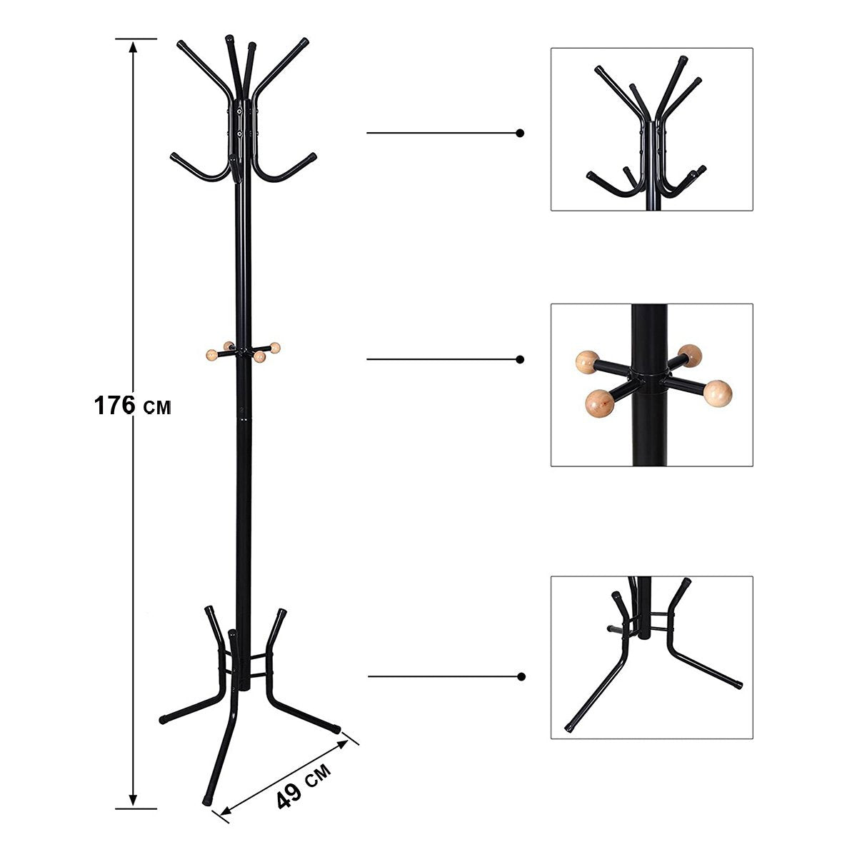 Met deze Zwarte Vrijstaande Kapstok met 12 Haken - H178 cm, behoren rondslingerende kledingstukken in huis tot het verleden! Het heeft een goede afwerking: gelakte, waterdichte en roestwerende oppervlakte, gemakkelijk schoon te maken. Gewoon afvegen…