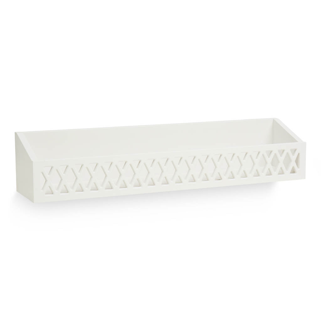 Bijzonder fraaie wandplank / boekenplank voor in de kinderkamer, uitgevoerd in Harlequin ruitpatroon. De plank is ideaal voor het opbergen van verzorgingsspullen boven de commode. Doordat het opstaande randen heeft kunnen spullen er niet vanaf vallen. Heb je een peuter in huis, dan kun je de wandplank bijvoorbeeld vlakbij het bed monteren, zodat je kleine er boekjes, speelgoed en andere persoonlijke spulletjes in kan bewaren. De plank is gemaakt van MDF en voorzien van VOC-vrije verf (vrij van vluchtige organische stoffen). Hij is 75 cm breed (de bijpassende Harlequin commode is 84 cm breed), 16 cm hoog en 16 cm diep. De plank wordt plat geleverd en is makkelijk in elkaar te zetten met bijgeleverde schroeven (voor houten muren) en pluggen (voor stenen muren).