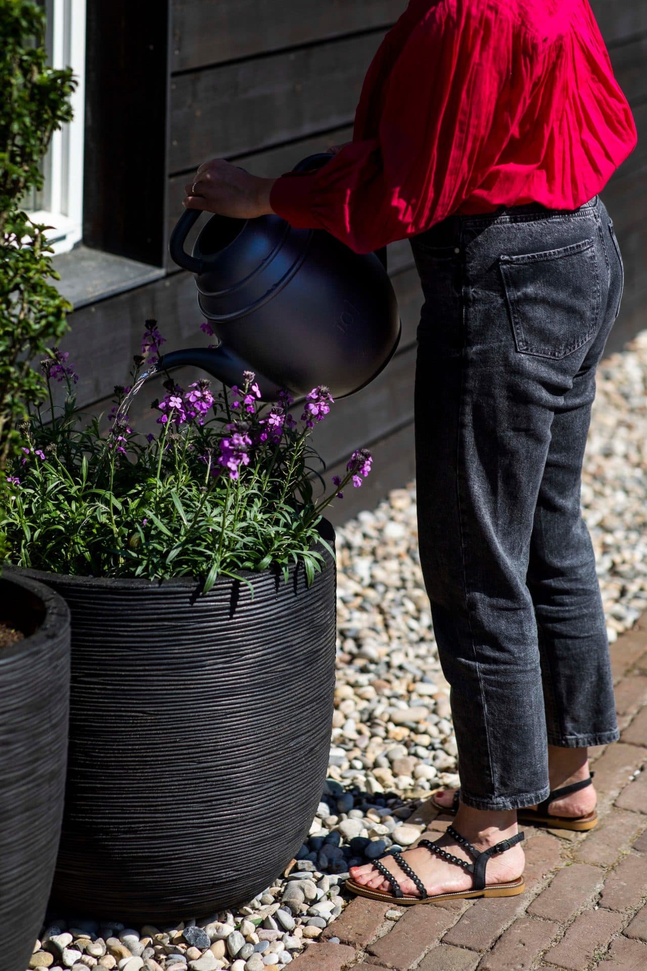 - BINNEN EN BUITEN | De bloempot is 100% waterdicht en daarom perfect voor gebruik binnenshuis. Voor buiten boor je een gat van 25mm in de bodem.