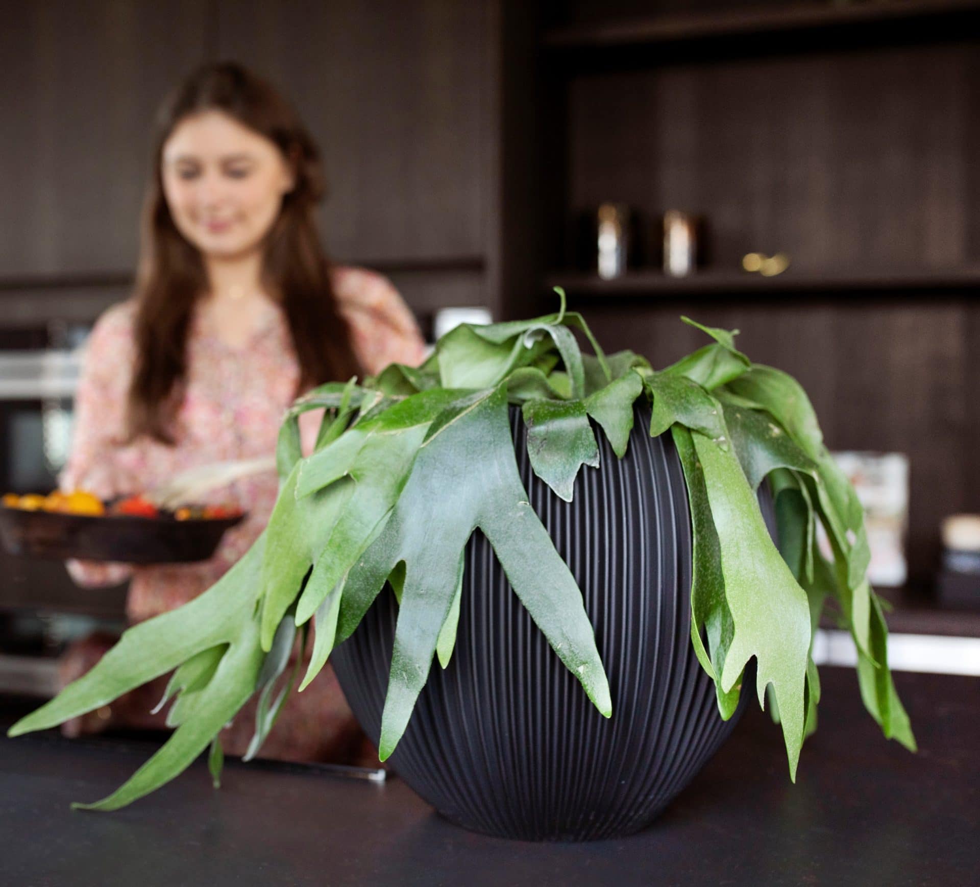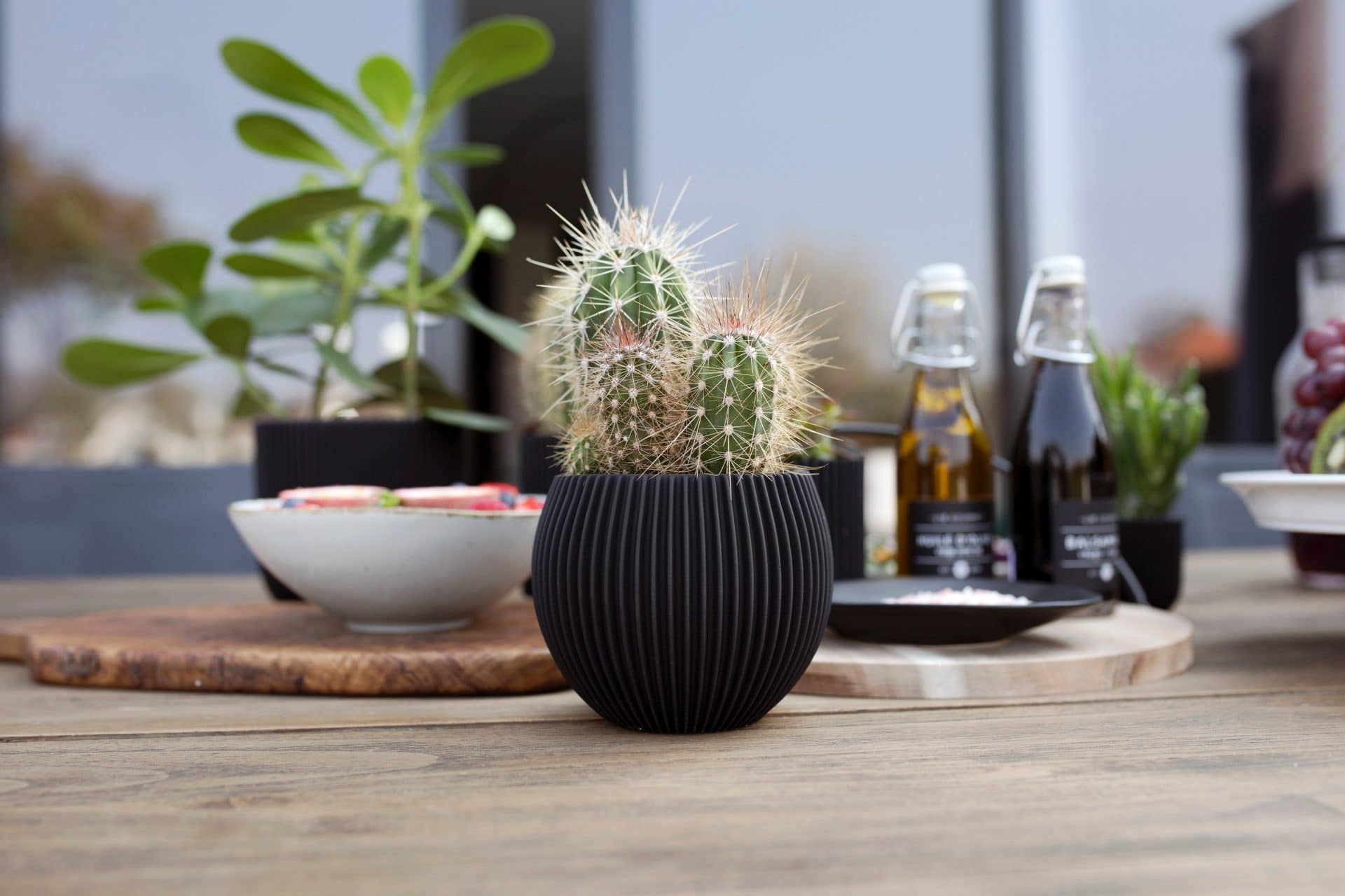 De Groove Black & Gold collectie is, zoals de naam al zegt, geïnspireerd op groeven. Vooral op de verticale groeven in stenen en bergen die zijn ontstaan in de loop van de jaren. Een collectie geïnspireerd op grote veranderingen van de natuur. Een speelse en stoere collectie binnen onze indoor nature-lijn. De Nature Groove collectie is handgemaakt, waardoor elke pot uniek is. De gouden kleur geeft deze textuur een warme, maar ook luxe look. Een echte eyecatcher bij jou thuis.