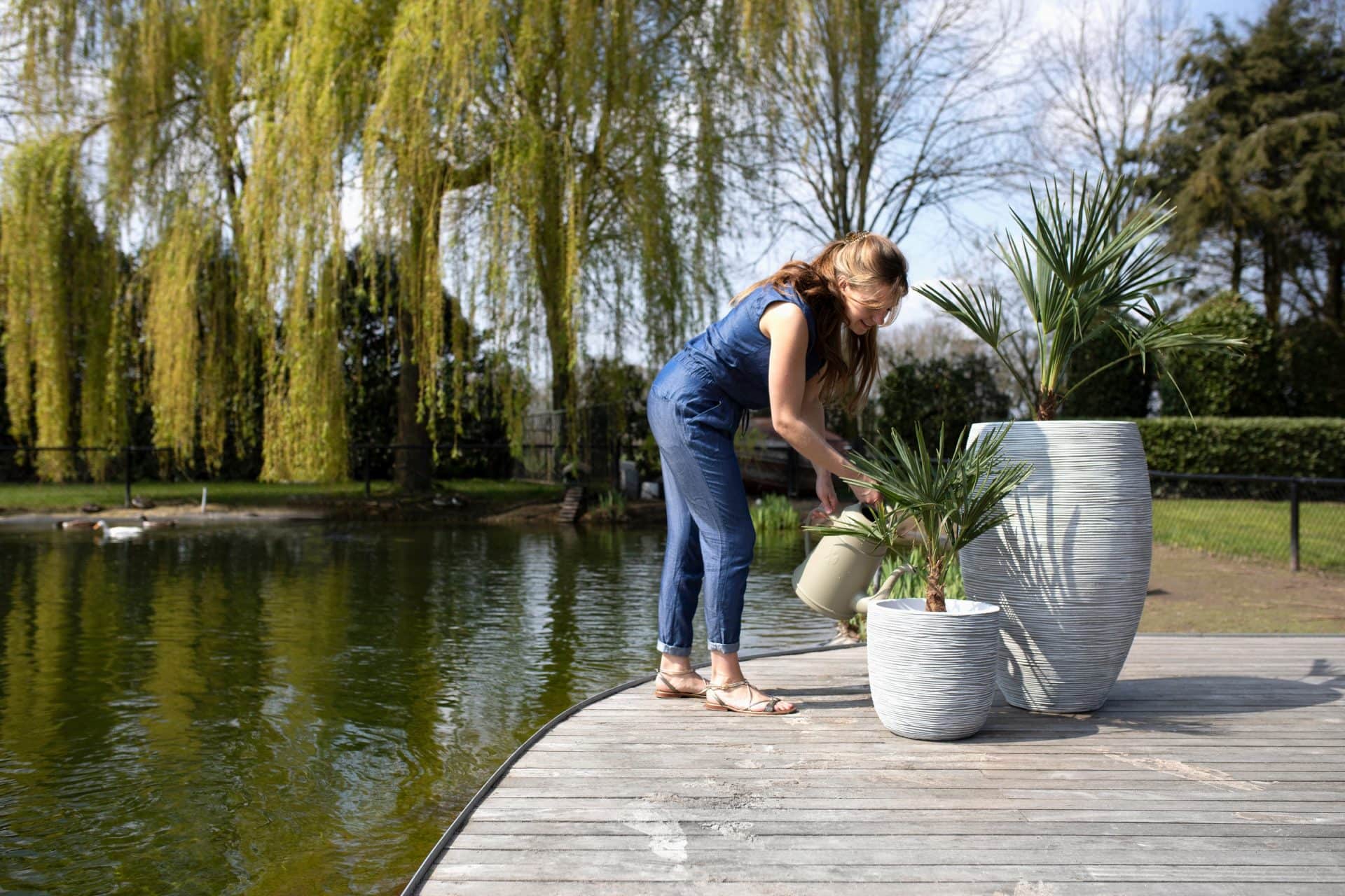 - BINNEN EN BUITEN | De bloempot is 100% waterdicht en daarom perfect voor gebruik binnenshuis. Voor buiten boor je een gat van 25mm in de bodem.