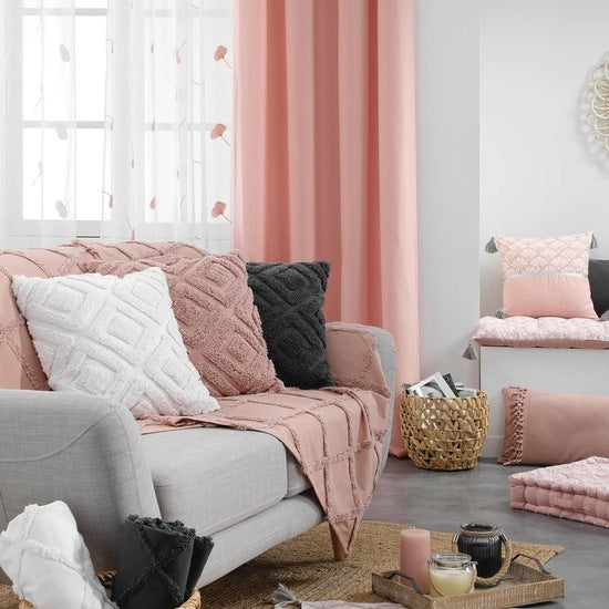 Maak je decoratie compleet met dit zachte donkergrijze kussen met reliëf van 45×45 cm dat zich aan al je interieursferen zal aanpassen! De geometrische vormen worden geaccentueerd met prachtige reliëfs die u zult waarderen om aan te raken. Dankzij het effen grijs kun je dit kussen in een kamer plaatsen om een vleugje charme te geven dankzij het zeer zachte materiaal. Zijn prachtige geometrische vormen zullen zeer goed harmoniëren in een woonkamer met Scandinavische of etnische sferen.
