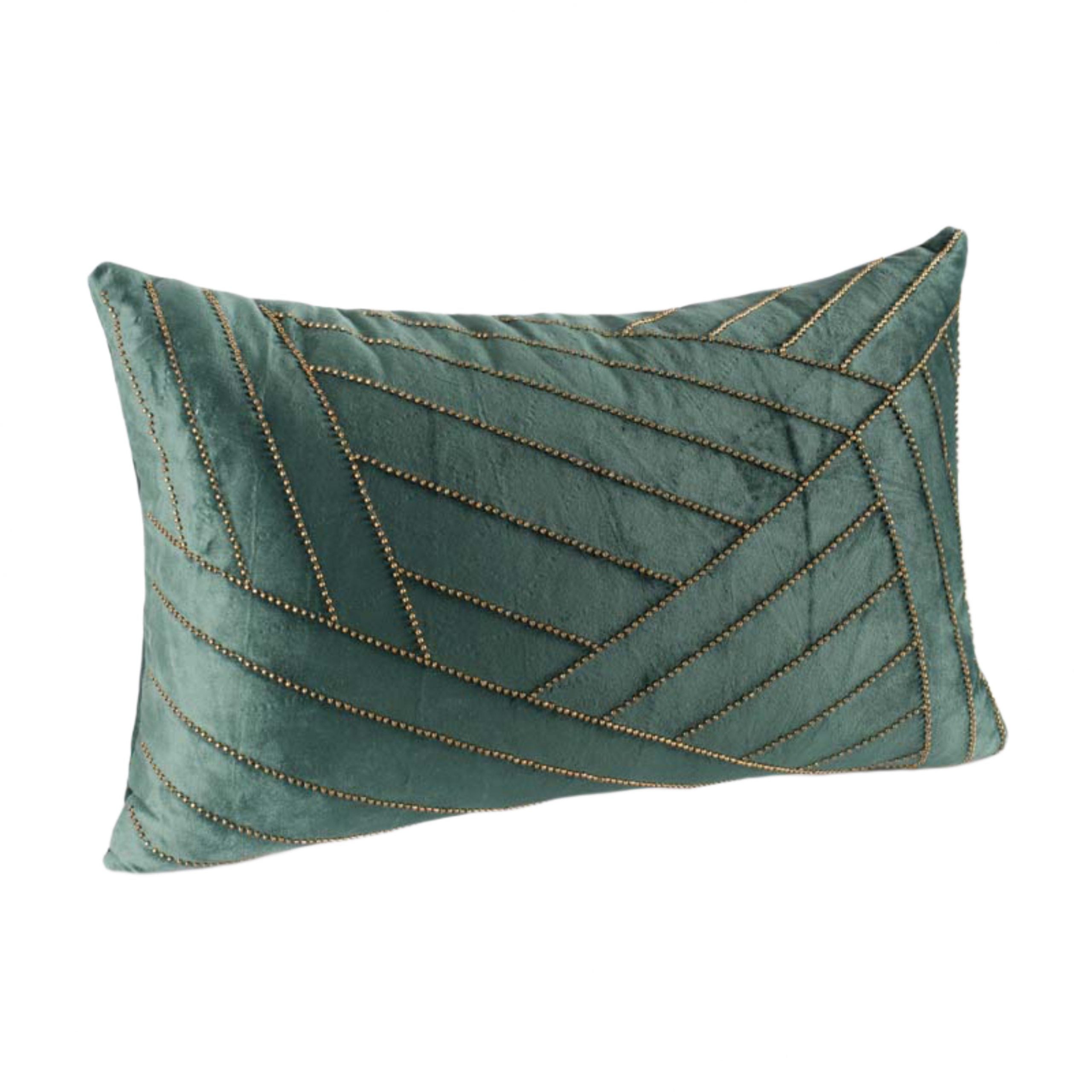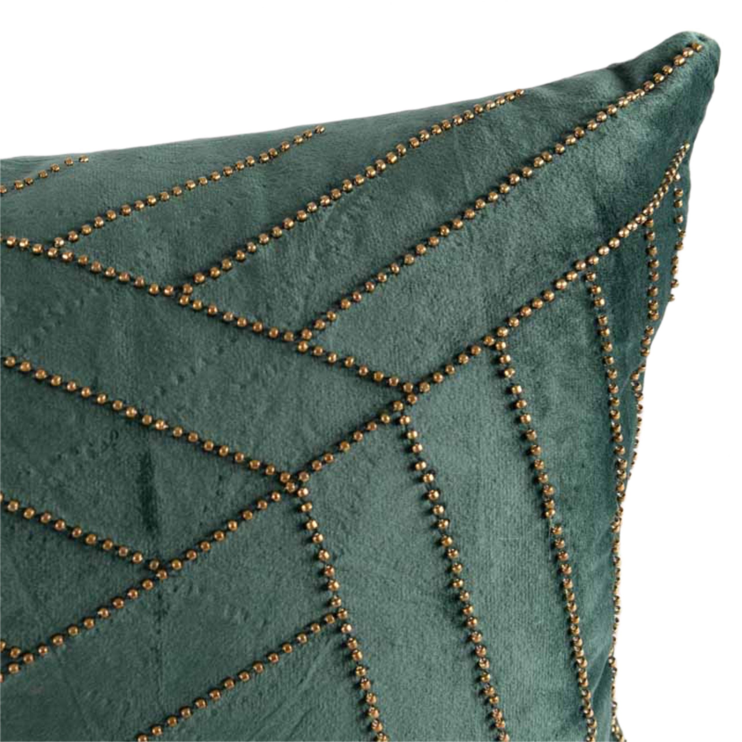 Dit stijlvolle kussen is gemaakt in een veelzijdige groen goud voor verschillende decors en heeft een groot en prachtig gedetailleerd geometrie in glinsterende geborduurde pareldetails op fluweel. Elegante en chique uitstraling voor een modern interieur. Gevuld met dik en duurzaam polyester voor langdurige volheid, biedt dit weelderige kussen maximaal comfort terwijl u thuis ontspant.