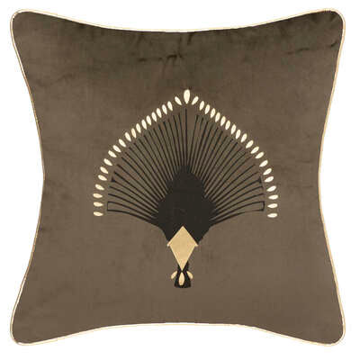CASA DI ELTURO Sierkussen Velvet Pauw met Gouden Bies - Khaki - Goud