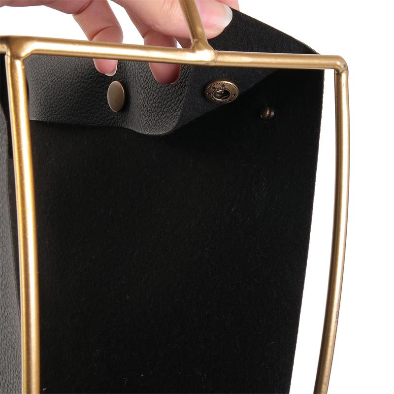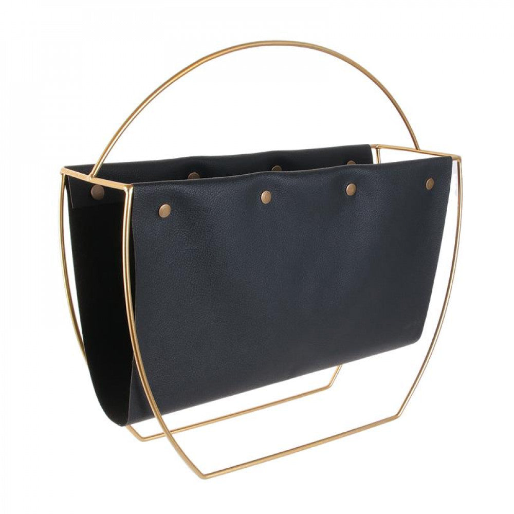 Magazines, schriftjes en kranten stijlvol opbergen? De Glamour magazinehouder zorgt ervoor. De combinatie van het gouden frame en de zwarte eco leder geven de houder een elegant en stijlvol design. Het frame heeft een handvat waardoor je het tijdschriftenrek gemakkelijk kan opnemen en verplaatsen. Van in de woonkamer tot in de toiletruimte, de handige organizer past overal in huis!