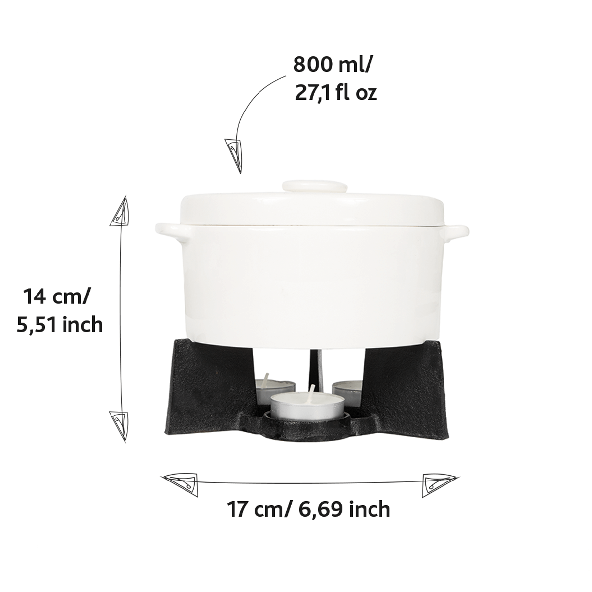 Maak Mac & Cheese of een ander heerlijk ovengerecht met de Cheese Baker L. Deze multifunctionele, keramieken ovenschaal heeft een inhoud van 800 ml en een diameter van 15 cm. Op het gietijzeren onderstel houden de 3 waxinelichtjes en de deksel het gerecht voor je warm. Ook zeer geschikt als unieke borrelhap. Porseleinen ovenschaal met onderstel Een ovengerecht koelt op tafel snel af. Niet met de Cheese Baker L! Deze zet je op het gietijzeren onderstel en de waxinelichtjes houden de inhoud heerlijk warm. Iets bewaren voor een later tijdstip? Plaats de Cheese Baker in de koelkast met de deksel erop. De aroma’s blijven zo goed bewaard. Compacte, multifunctionele ovenschaal met deksel Deze ronde ovenschaal gebruik je voor elk moment van de dag: als voorgerecht, hoofdgerecht, nagerecht of bij de borrel. Wat dacht je van een warm appeltaartje, hartige taart of gebakken camembert. Ook geschikt als kaasfondueset of voor het stoven van vlees en vis. Vaatwasserbestendig Nog een voordeel van deze kleine ovenschaal: hij mag in de vaatwasser. Zo is de Cheese Baker L snel weer schoon en geniet je nog jarenlang van de heerlijkste, warme gerechten. Benieuwd naar een Cheese Baker recept? Je kunt ontzettend veel met de Cheese Baker L. Hier zijn een paar voorbeelden: Warme mozzarella met pesto, tomaatjes & pijnboompitten Camembert uit de oven met vijgen, walnoten en pistachenoten Warme geitenkaas met walnoten, honing & tijm S'mores Dip Klassieke Mac & Cheese Hartige taart met spinazie, courgette & cashewnoten Paté brûlée En nog veel meer!