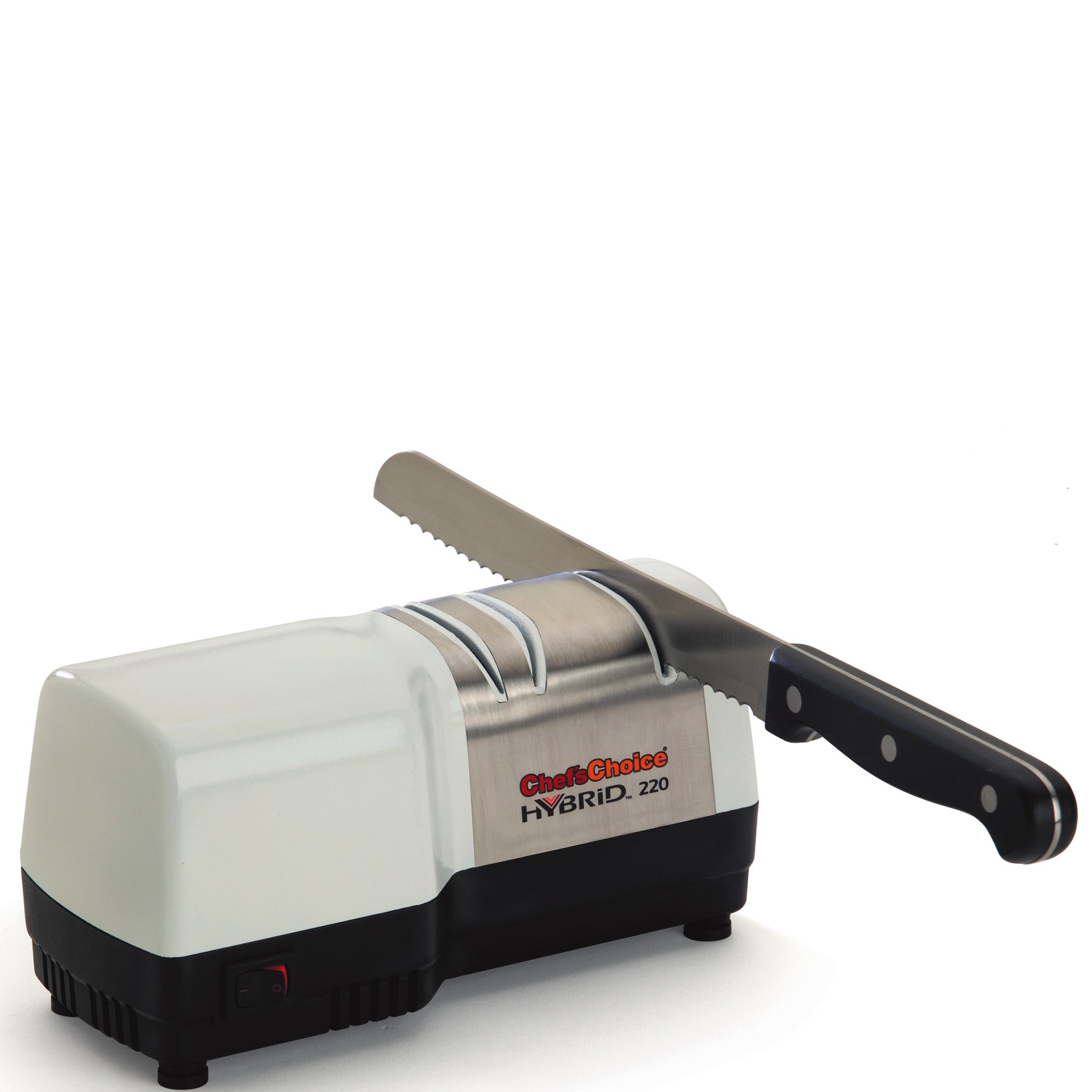 Slijpen in twee fasen De Hybrid 220 van Chef’sChoice is de ultieme messenslijper voor zowel gladde als gekartelde messen. De Hybrid 220 combineert een elektrische slijpfase met een handige polijstfase wat als eindresultaat een perfect geslepen mes heeft. In de elektrische slijpfase wordt het mes met de grootste precisie geslepen door de roterende diamanten slijpschijven. Hierdoor wordt een eerste slijphoek gecreëerd. In de tweede fase wordt de motor niet gebruikt. De unieke Criss-cross technologie zorgt voor een iets grotere slijphoek met een microscopische karteling langs de hele messnede.