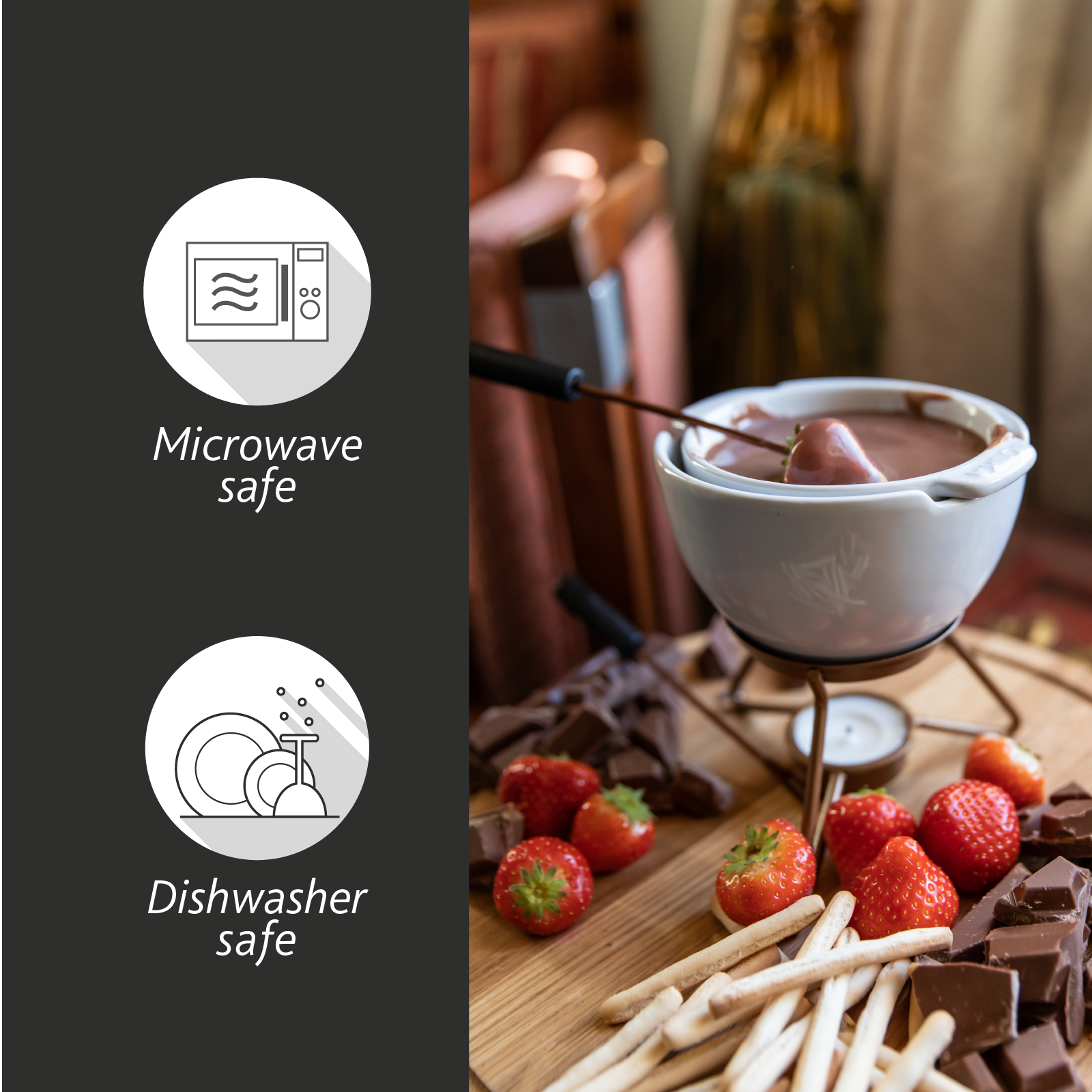 - MAGNETRON- & VAATWASSERBESTENDIG: tijdsbesparing door de fondue op te warmen in de magnetron en fondueset in de vaatwasser mee te laten draaien
