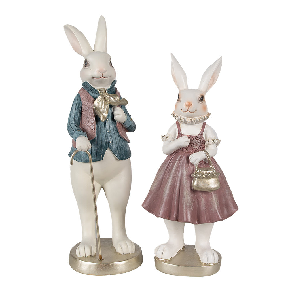 Clayre & Eef Beeld Konijn 32 cm Wit Blauw Polyresin