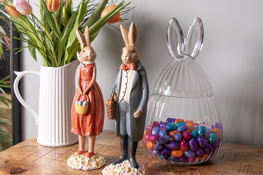 Niet alleen voor Pasen, maar voor het hele jaar door is dit konijnen beeld een echte must-have! Met hun lieflijk karakter en grote oren zul je altijd een kenmerkend beeld in huis hebben waar iedereen op verliefd wordt. Dit konijnen beeld is een ware aanwinst voor jouw interieur.