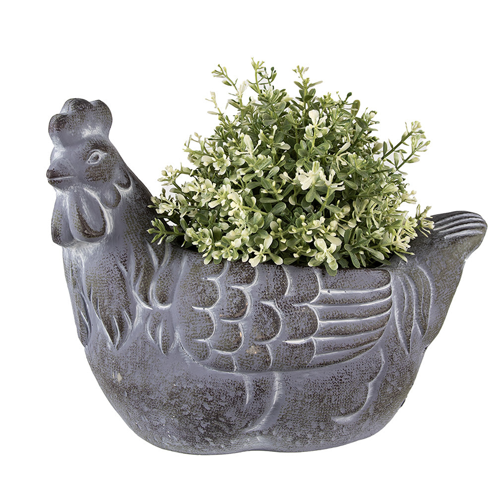 Clayre & Eef Bloempot Kip 29x17x23 cm Grijs Steen