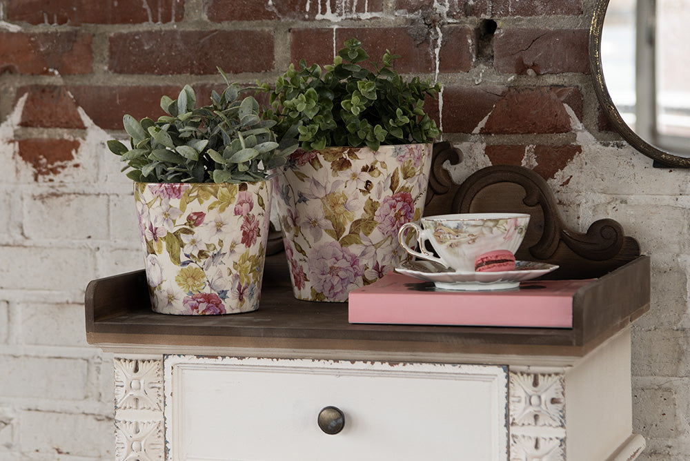 De schalen en potten van Clayre & Eef doen het goed in jouw vensterbank én op je tuintafel. En wie zegt dat je niet eens kunt afwisselen? Een aantal van onze artikelen is daarvoor zeer geschikt. In dezelfde pot in de zomer een mooie bloeier op je terrastafel en in de winter een sfeer brengende kamerplant in de vensterbank.