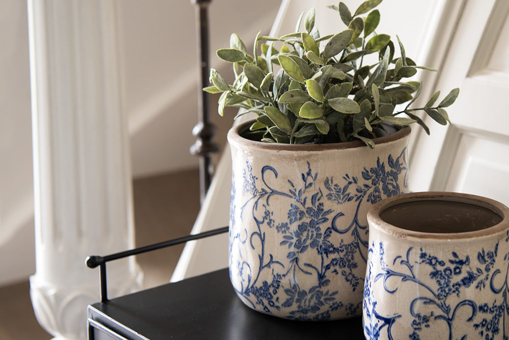 Clayre & Eef Bloempot Ø 17x16 cm Blauw Wit Keramiek Rond Bloemen