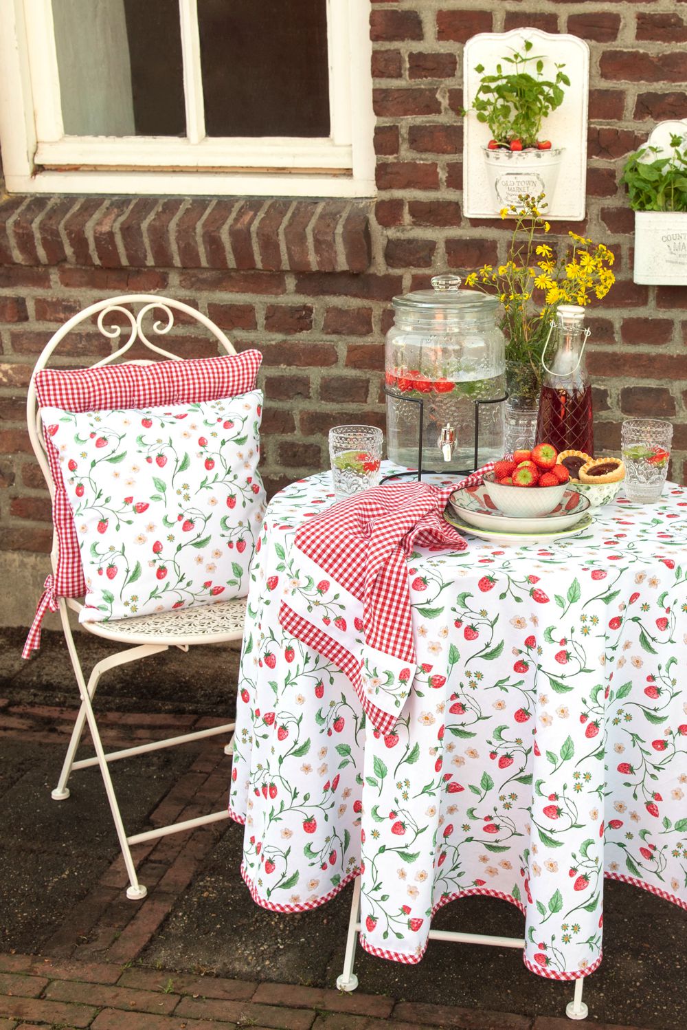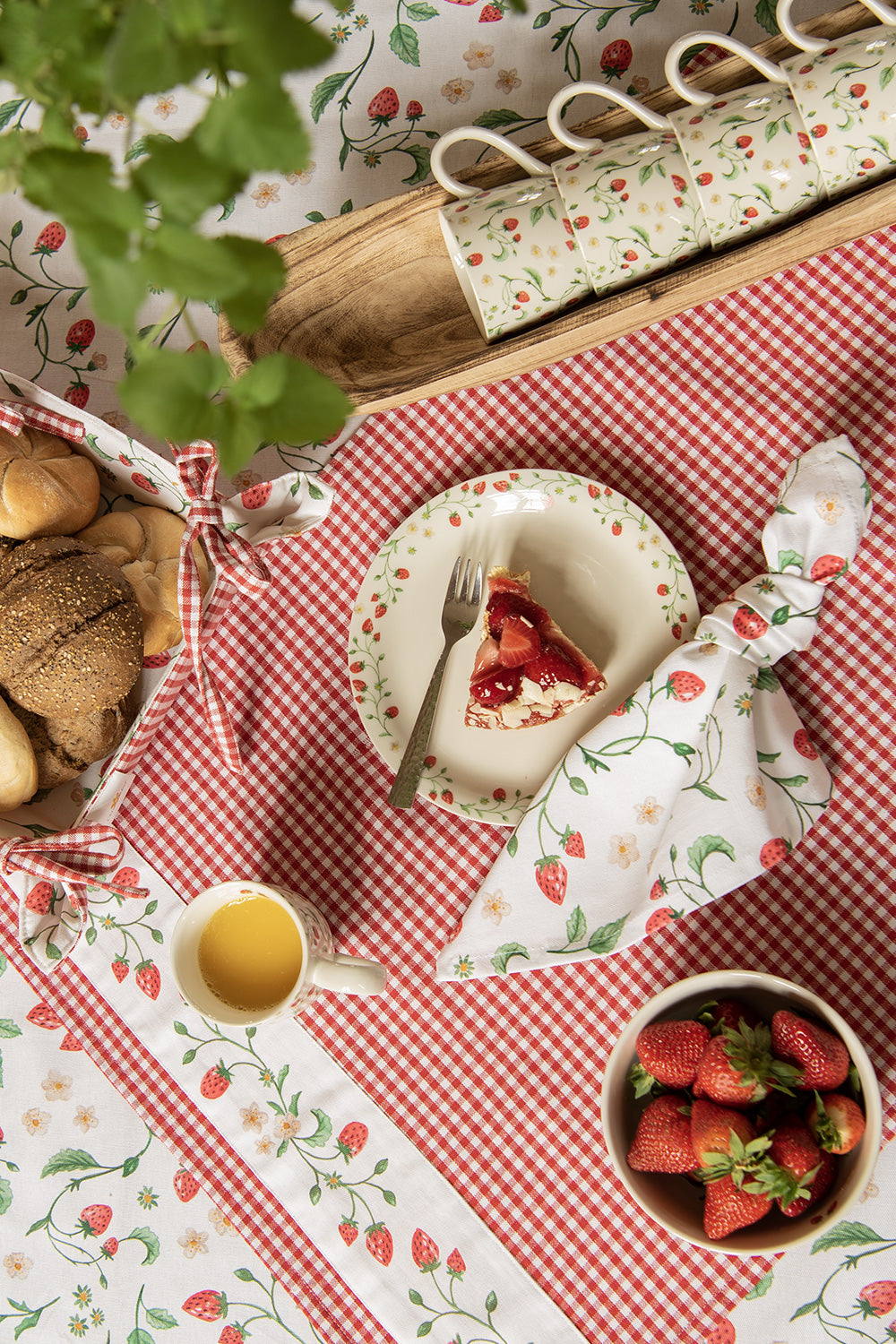 Clayre & Eef Broodmand 35x35 cm Wit Rood Katoen Aardbeien