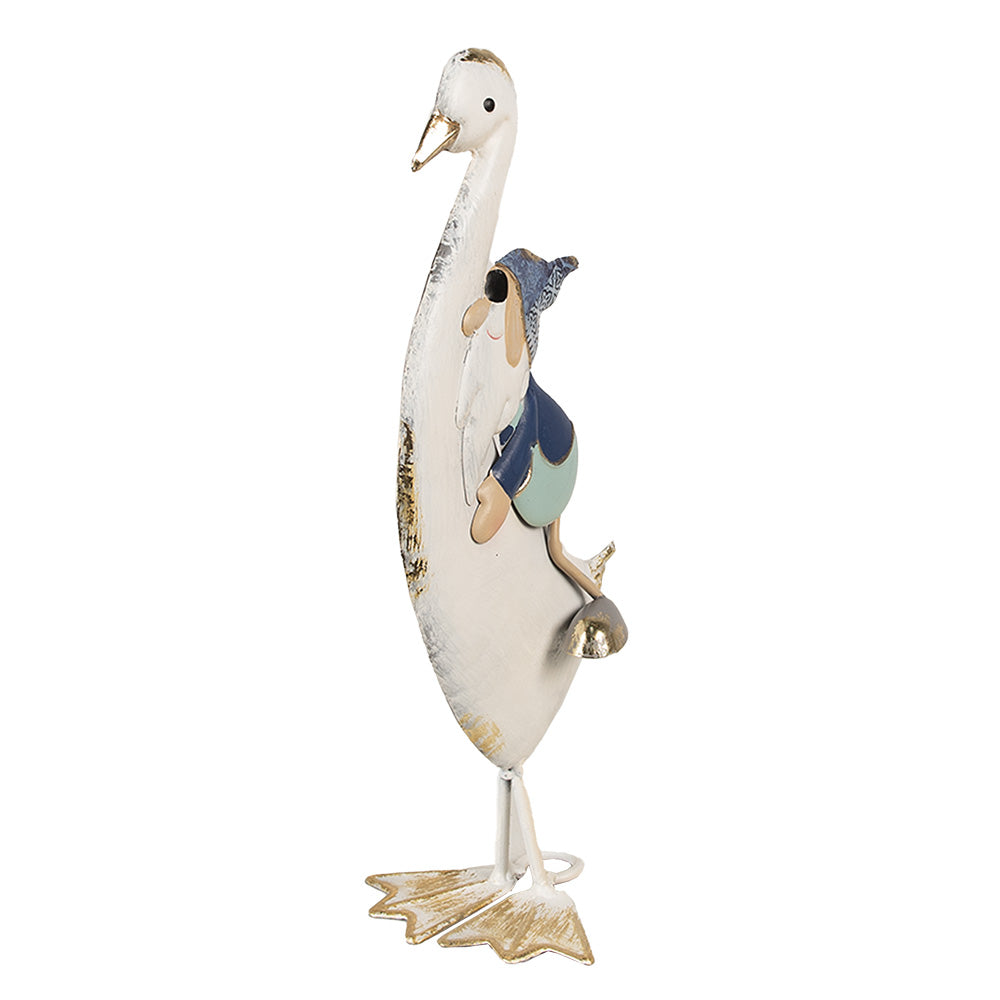 Clayre & Eef Decoratie Beeld Gans 36 cm Wit Blauw Metaal