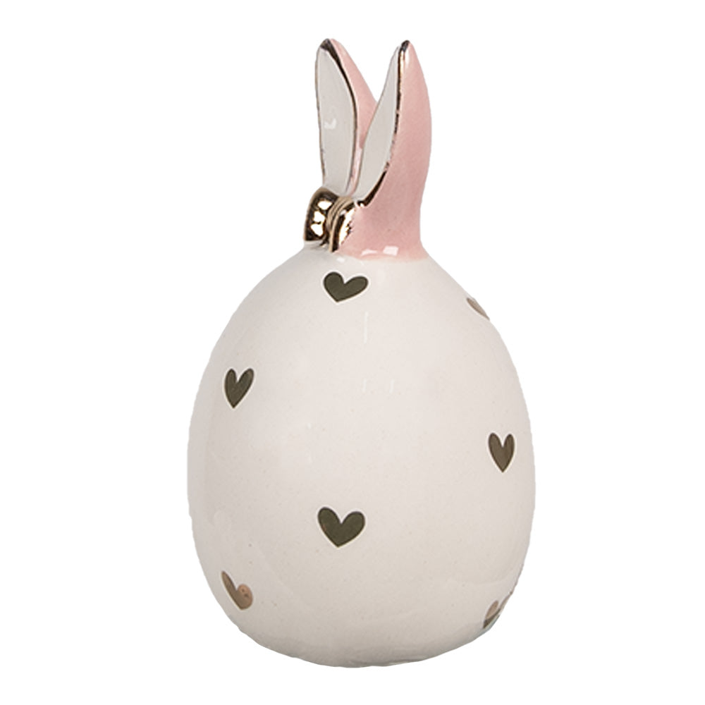 Clayre & Eef Decoratie Ei Ø 5x9 cm Wit Keramiek Hartjes