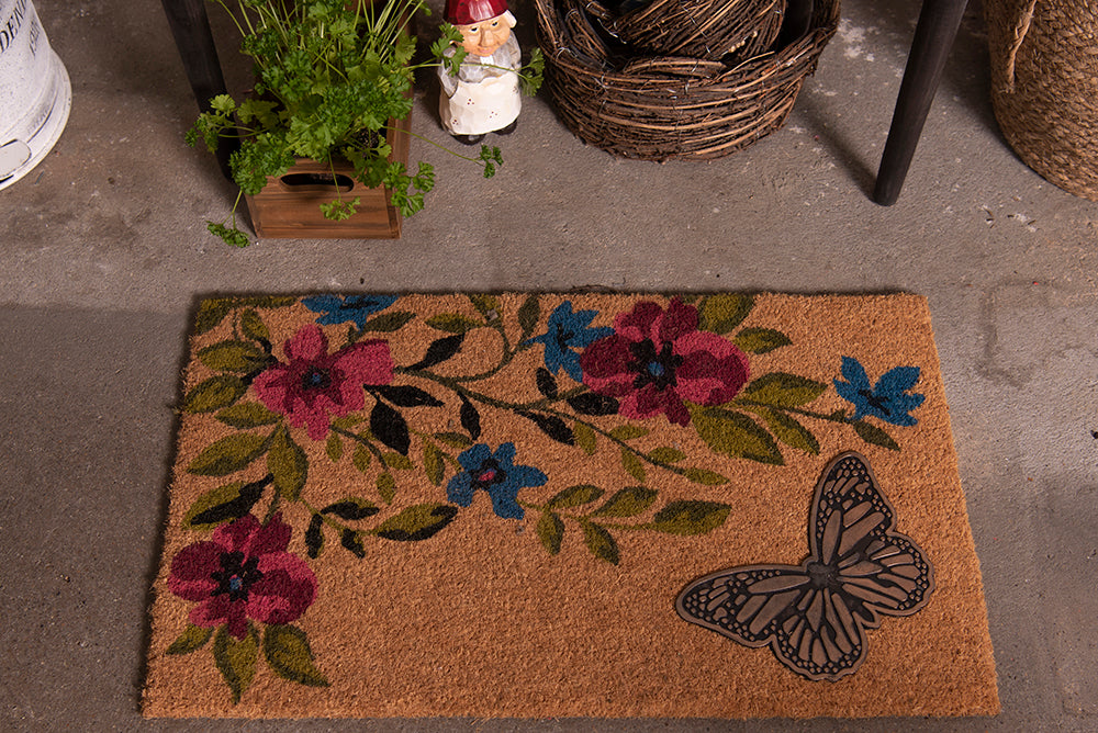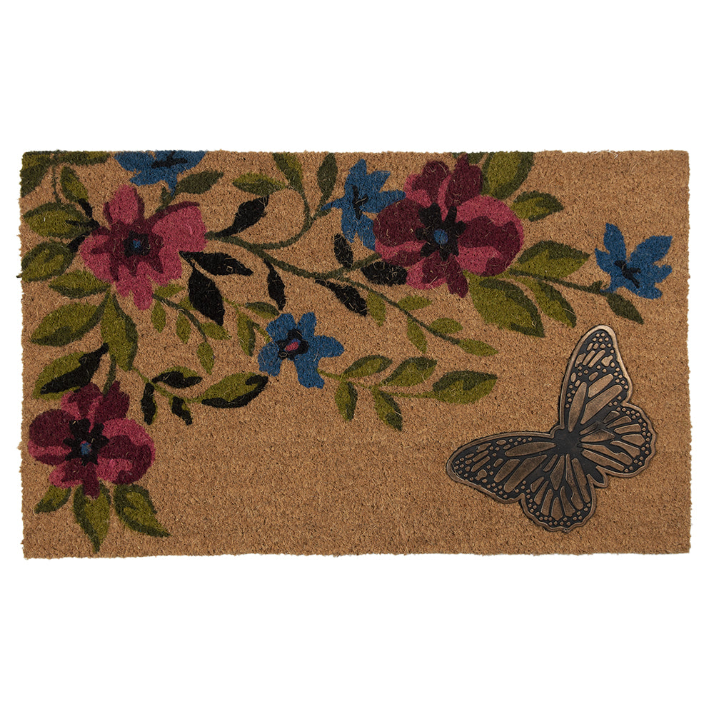 Clayre & Eef Deurmat 75x45 cm Bruin Roze Kokosvezel Rubber Rechthoek