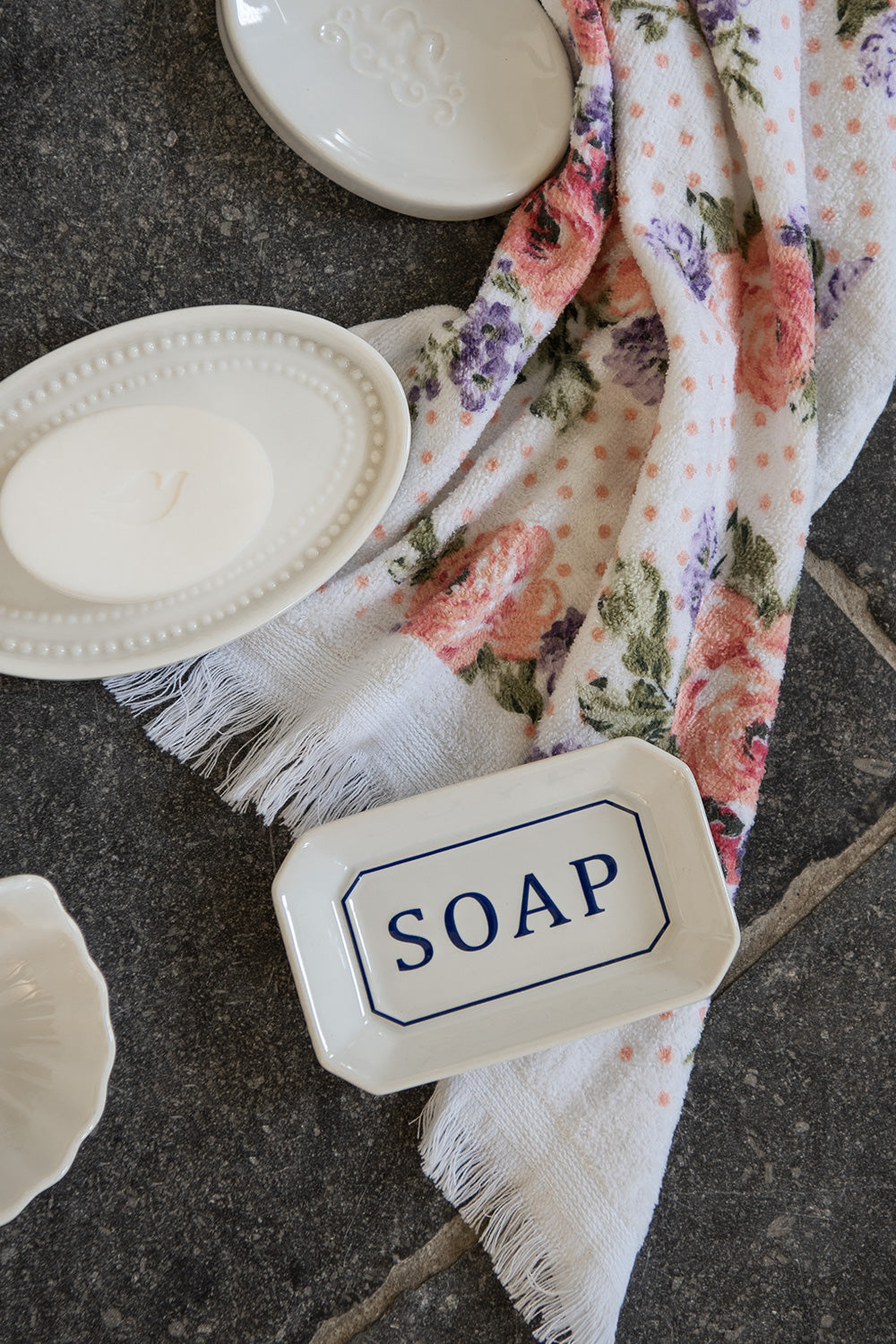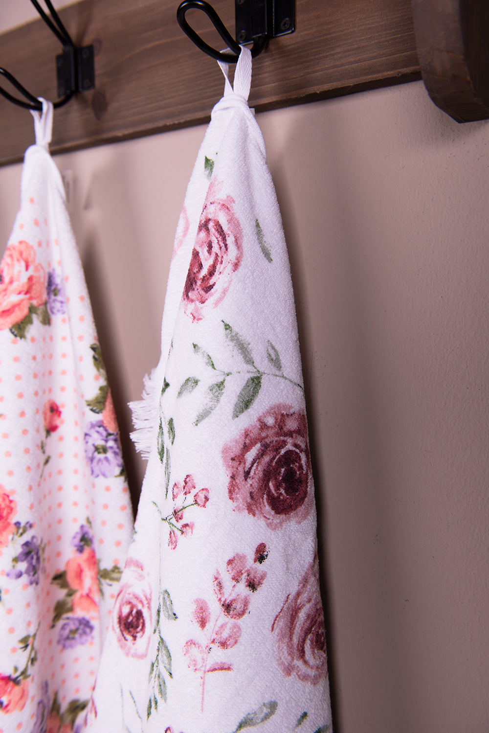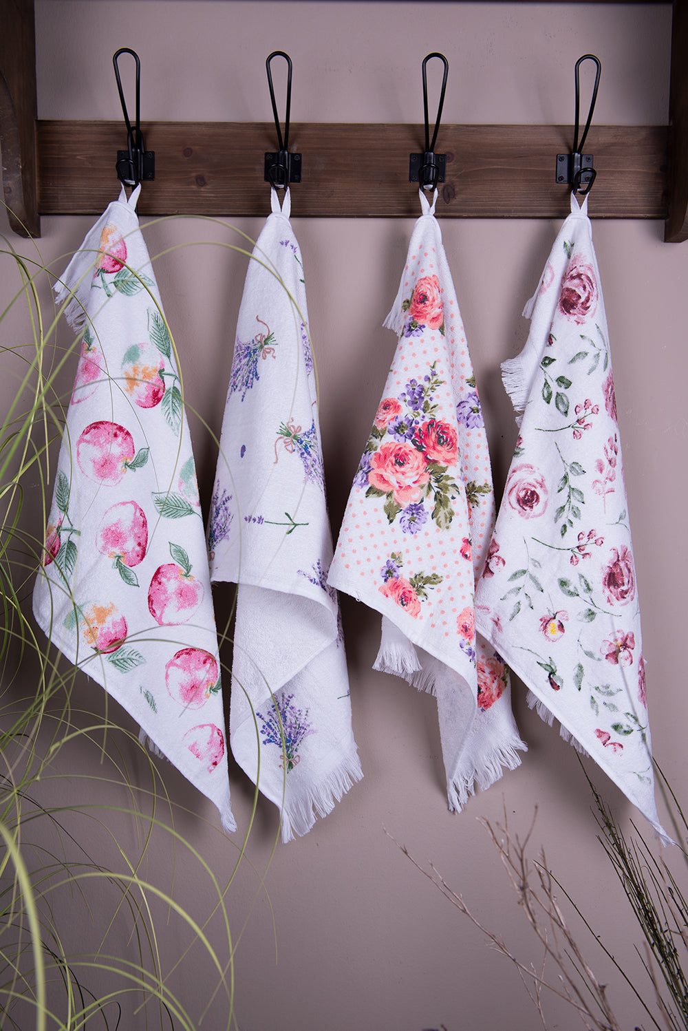 Clayre & Eef Gastendoekje 40x66 cm Roze Wit Katoen Rozen