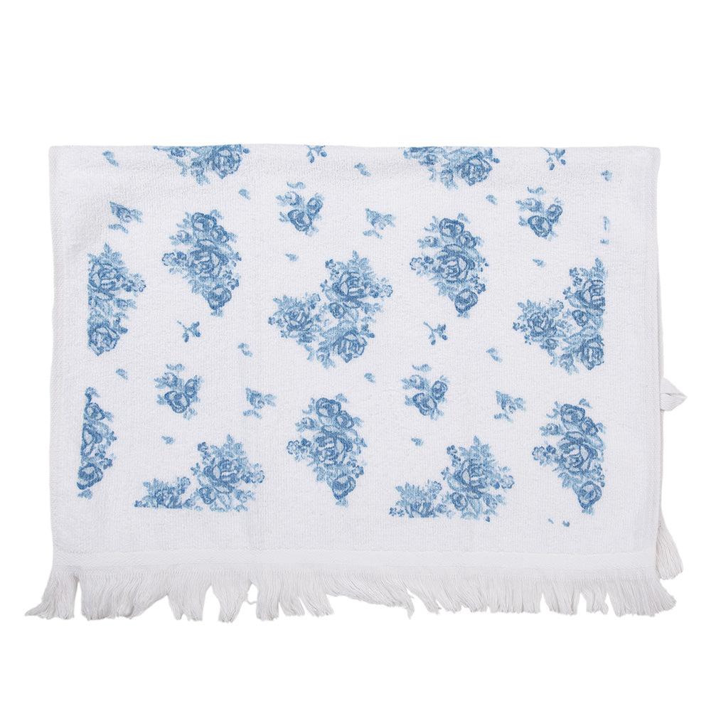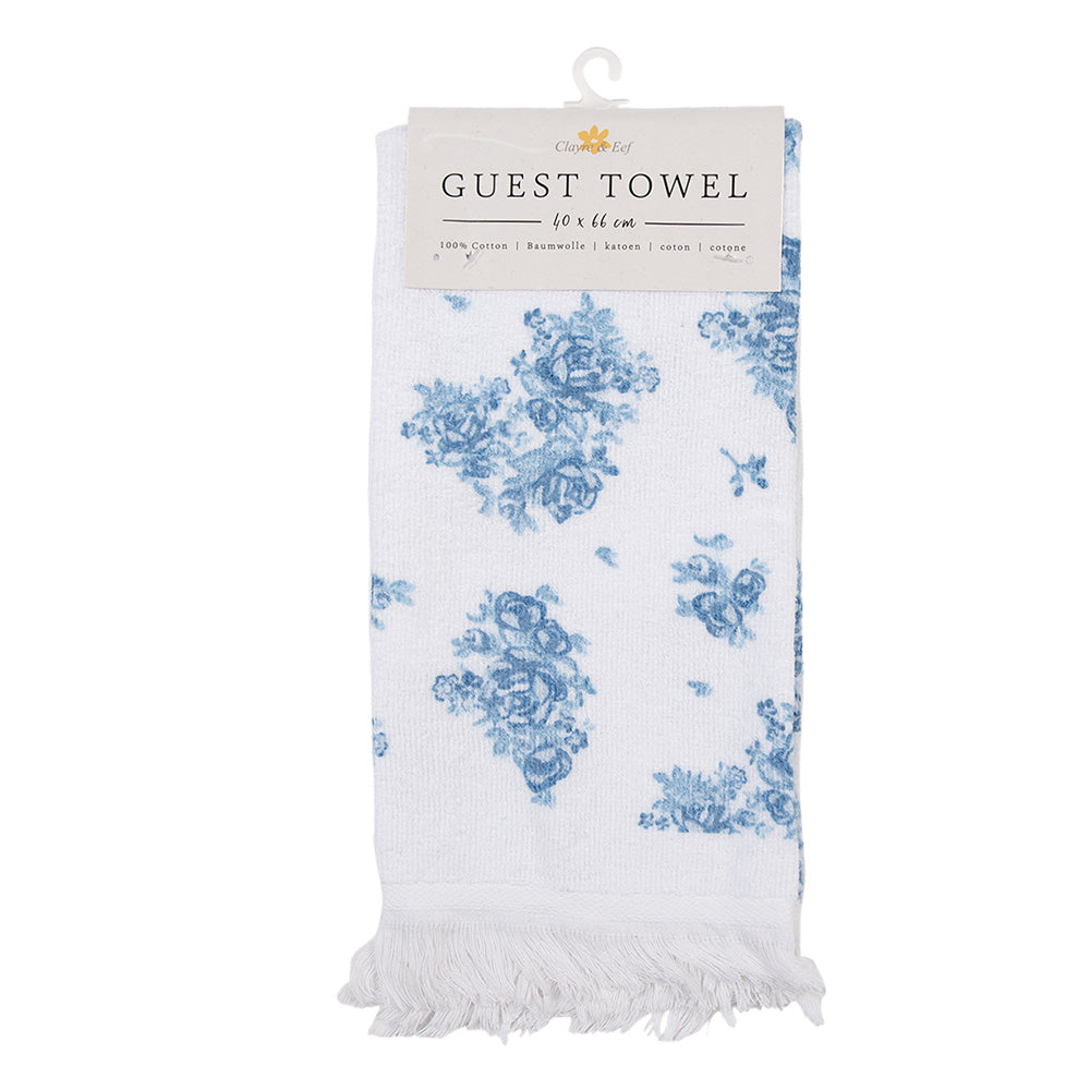 Clayre & Eef Gastendoekje 40x66 cm Wit Blauw Katoen Rechthoek Roosjes