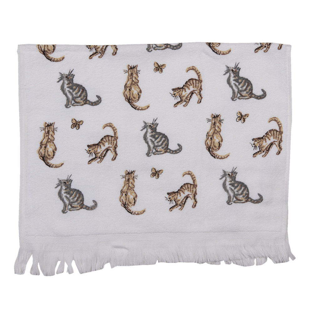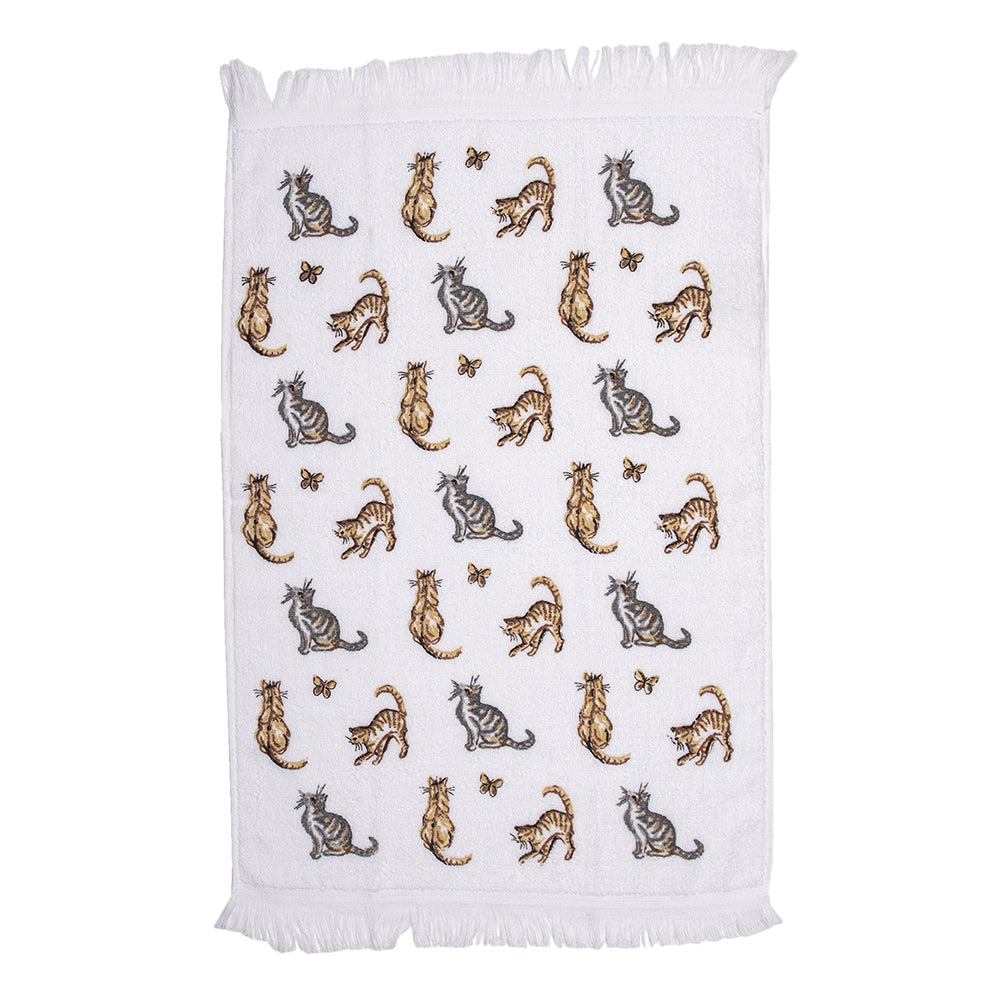 Clayre & Eef Gastendoekje 40x66 cm Wit Grijs Katoen Katten Toilet
