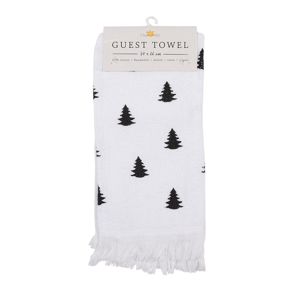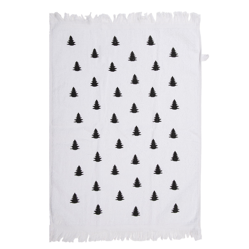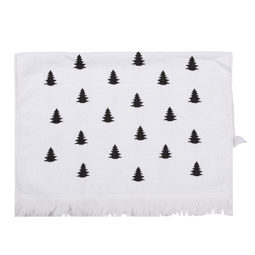 Clayre & Eef Gastendoekje 40x66 cm Wit Zwart Katoen Kerstbomen