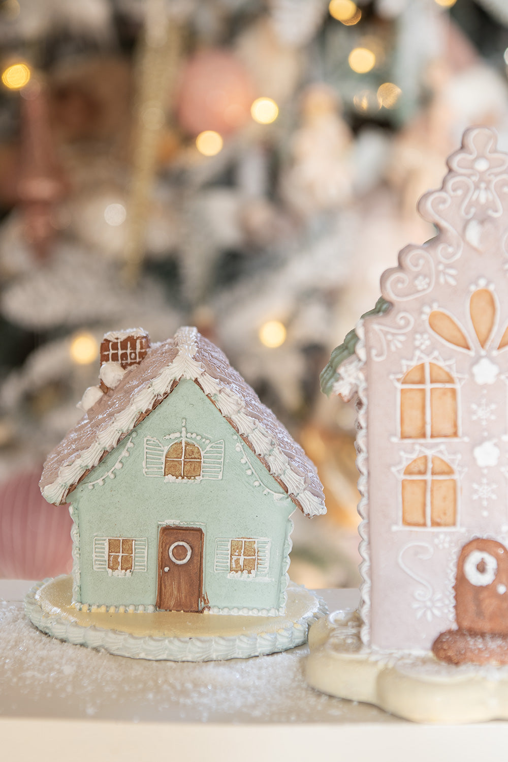 Het peperkoekhuisje is voorzien van kleurrijke details zoals gesuikerde ramen, snoepversieringen, en een schoorsteen bedekt met sneeuw. Het dak lijkt bezaaid met poedersuiker en de gevels zijn versierd met snoepjes en frosting, wat een feestelijke en speelse uitstraling geeft. Dit huisje straalt warmte en gezelligheid uit en is een perfecte aanvulling op jouw kerstdecoratie. Plaats dit artikel op een schouw, een vensterbank, of simpelweg als middelpunt op een feestelijke tafel om de magische kerstsfeer compleet te maken. Gingerbread house Peperkoekhuisje