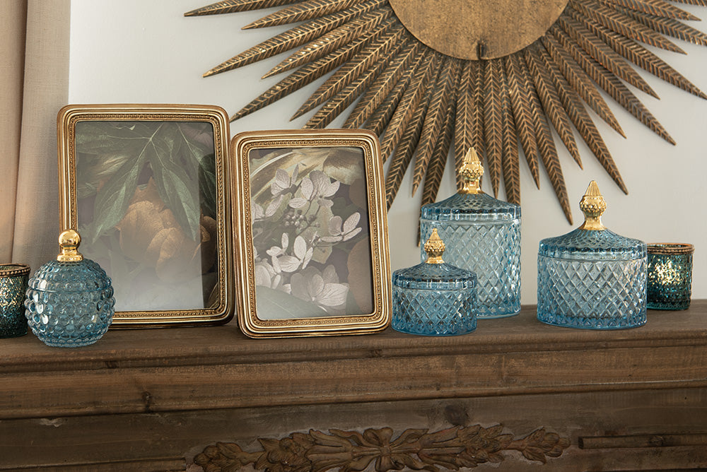 Clayre & Eef Glazen potje Ø 9x10 cm Blauw Glas Potje met deksel