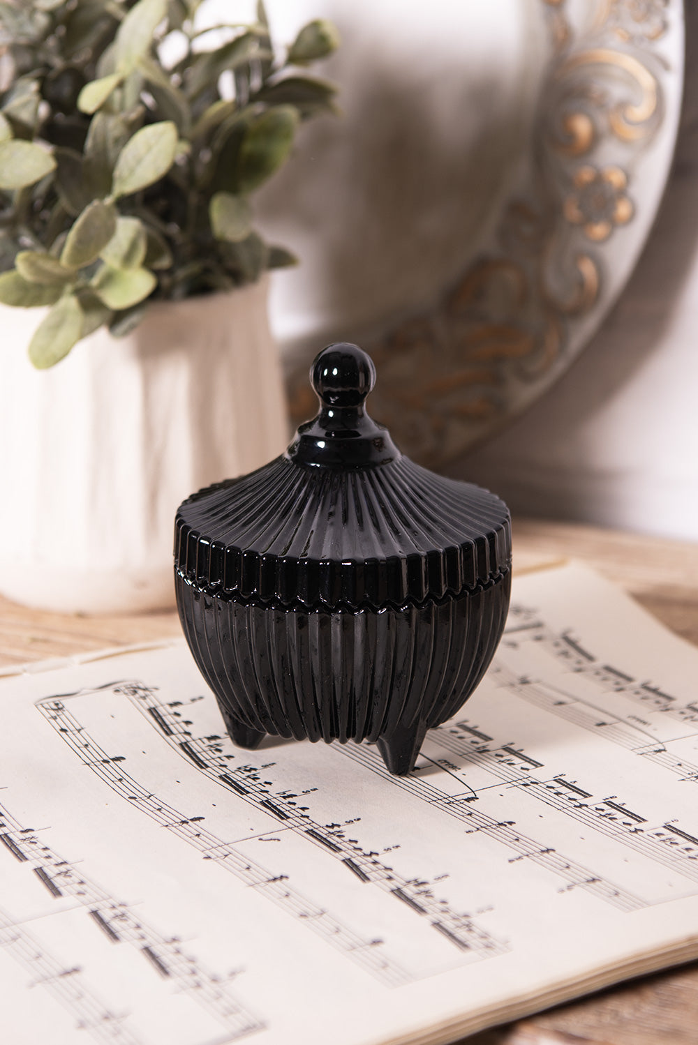 Clayre & Eef Glazen potje Ø 9x12 cm Zwart Glas Potje met Deksel