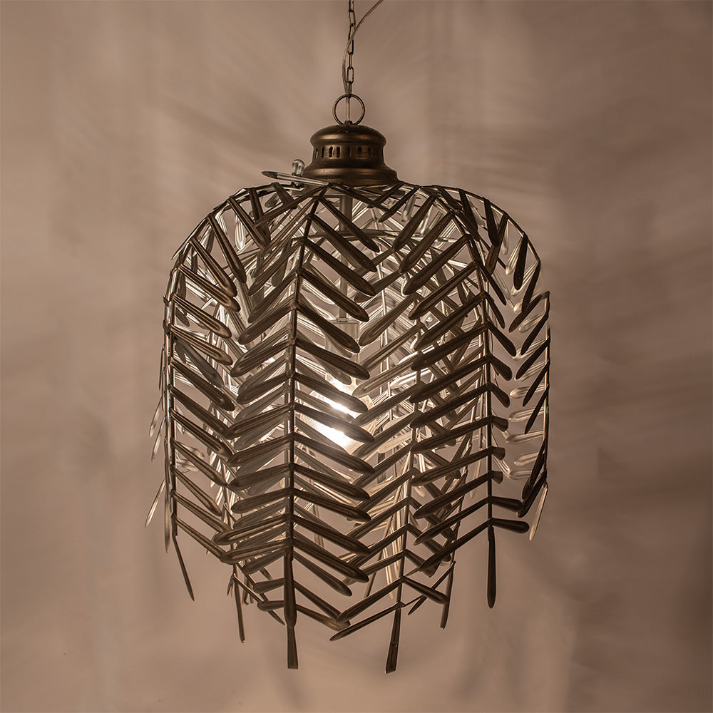 Clayre & Eef Hanglamp Ø 49x66 cm Goudkleurig Grijs IJzer Bladeren